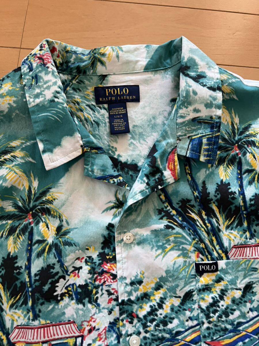 Lサイズ ポロ ラルフローレン ハワイアンシャツ アロハシャツ ヨット パームツリー柄 POLO RALPH LAUREN VINTAGE CAMP