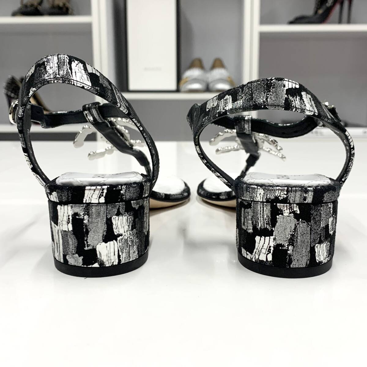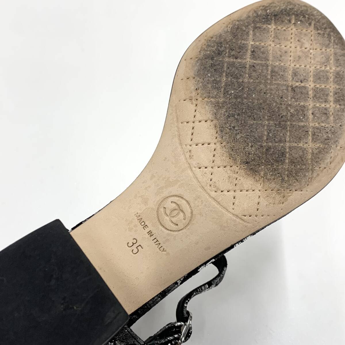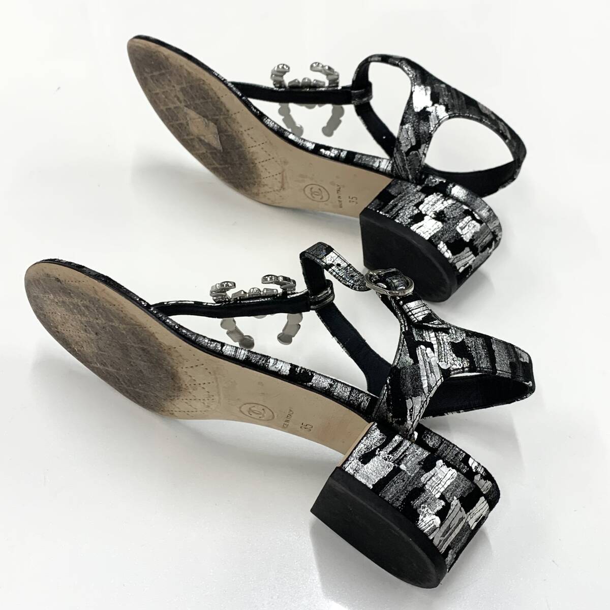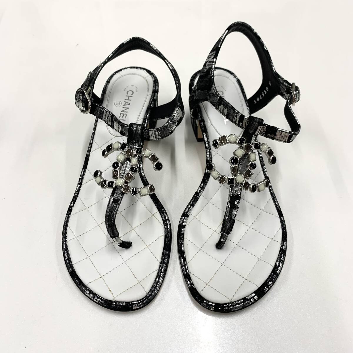 シャネル ファブリック レザー ココマーク トングサンダル ブラック シルバー