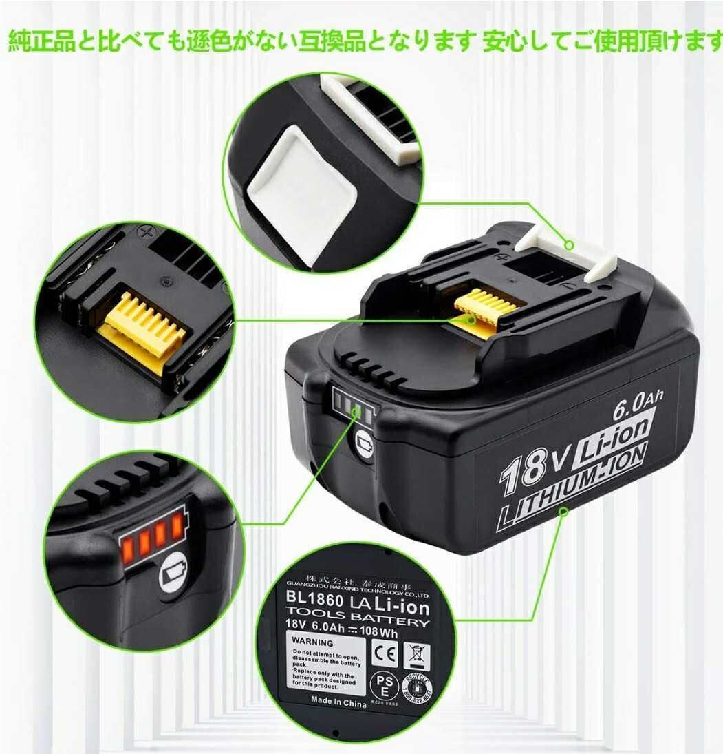 仕様:マキタ18vバッテリー BL1860B 電圧:18V 容量:6000mAh マキタBL1815 BL1830 BL1840 BL1850 BL1860 BL1890 194205-3 194230-4 LXT400、急速充電器DC18RC、DC18RA、DC18RFなど対応