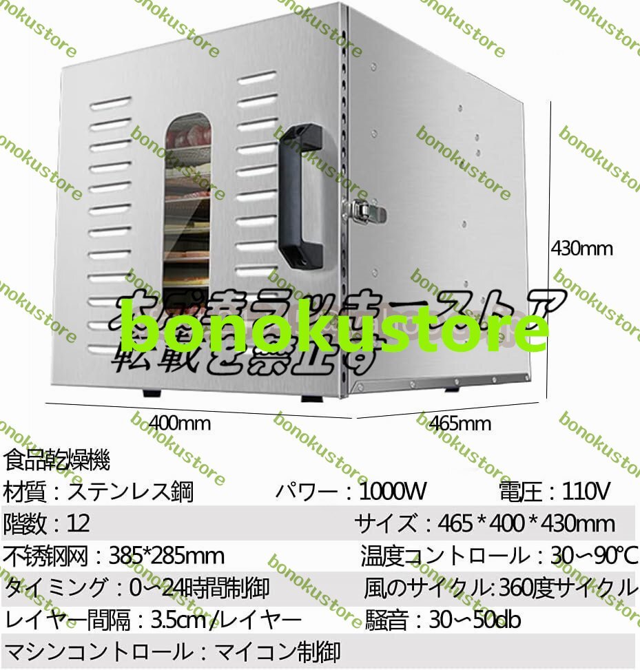 食品乾燥機 12層 フードディハイドレーター ドライフルーツ 野菜ドライヤー 智能温度制御 LCDタッチパネル 熱風循環システム 大容量 業務用
