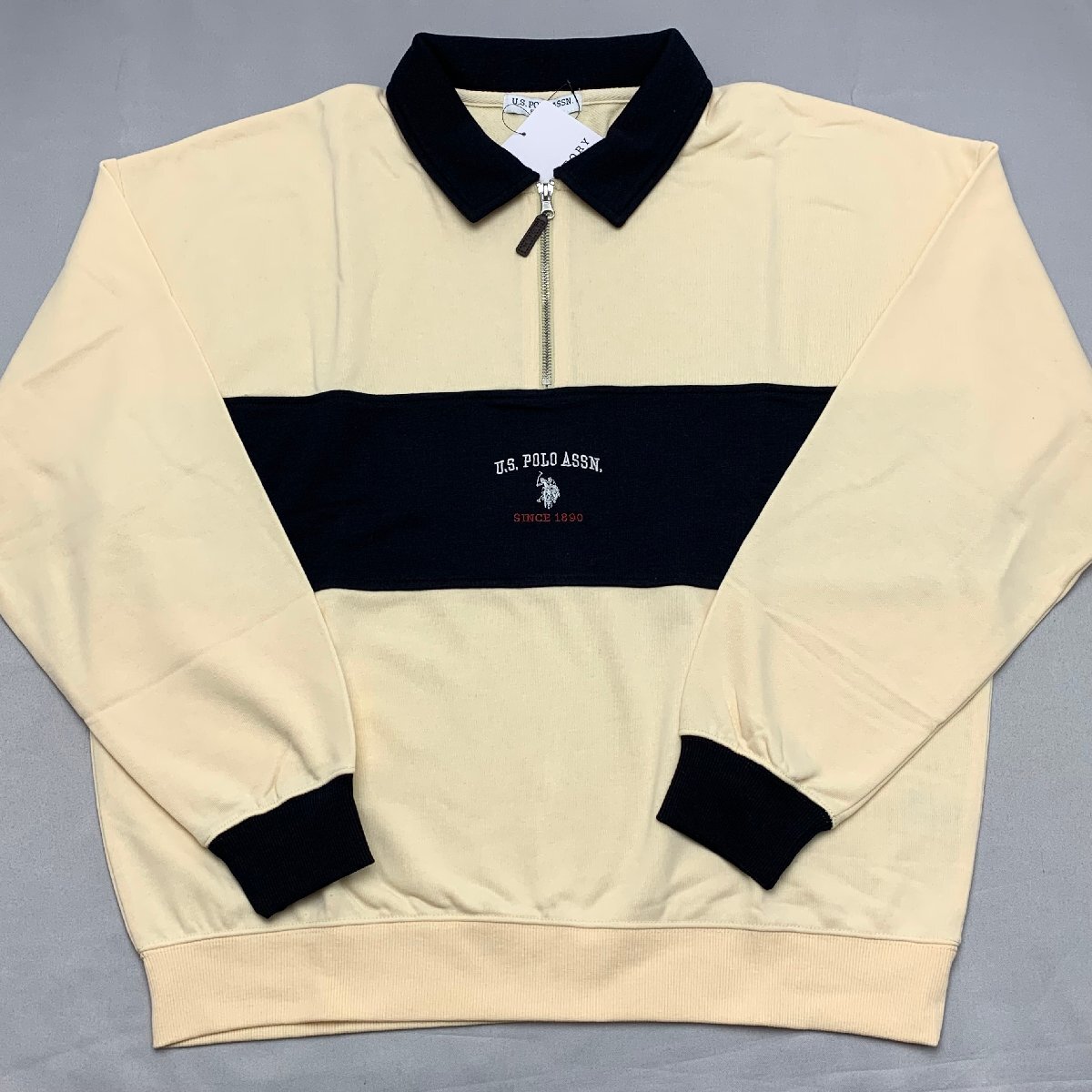 【送料無料】【新品】US.POLO.ASSN メンズ ポロ衿ハーフジップトレーナー(裏毛素材 ゆったりタイプ) S  アイボリー*ネイビー★41334