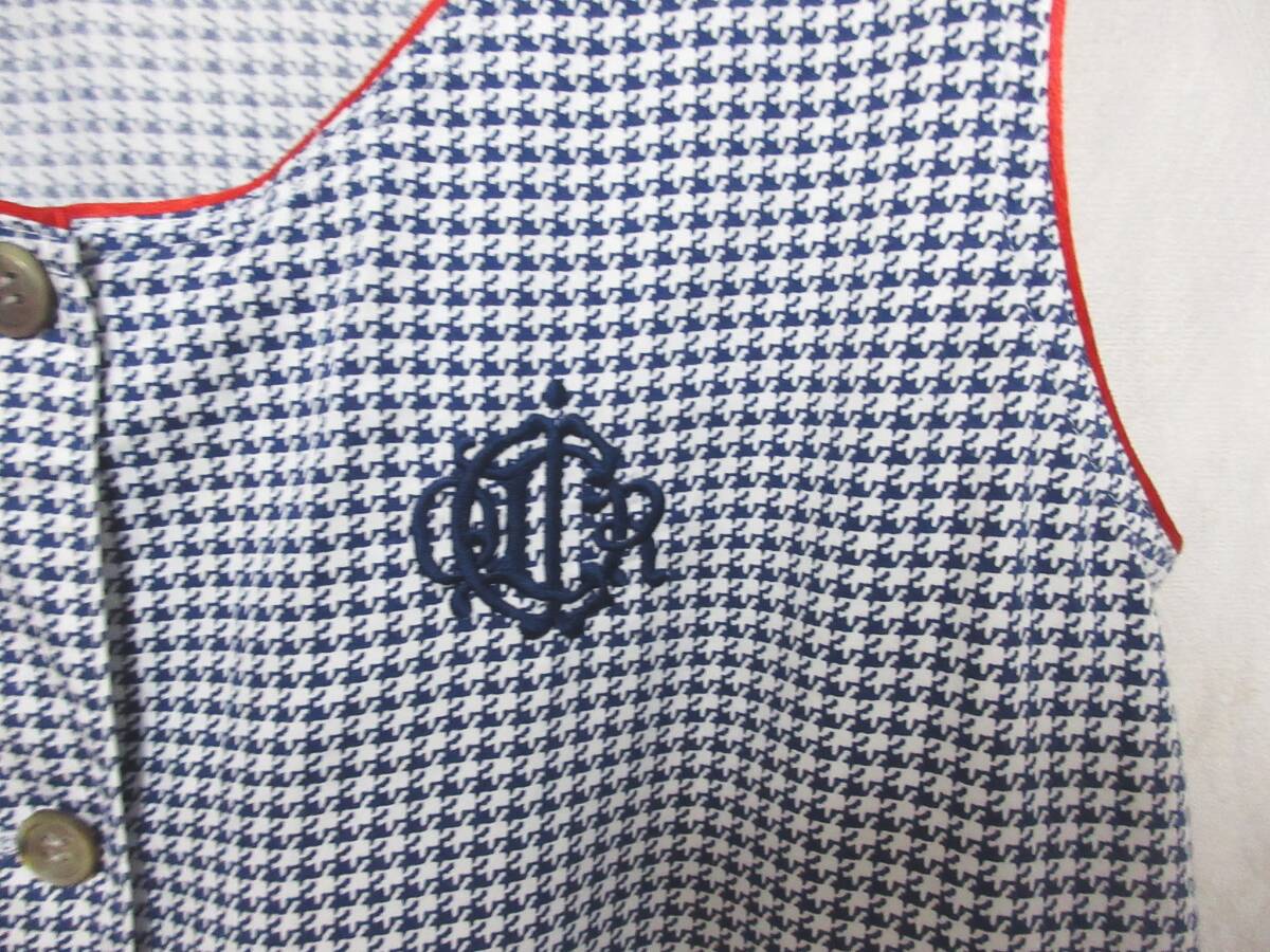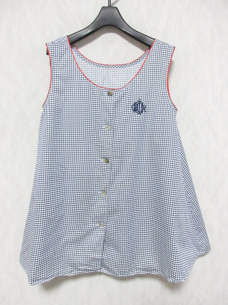 Christian Dior クリスチャンディオール チェック ロゴ刺繍 フレア ノースリーブ シャツ レディース M ホワイト ネイビー yu167