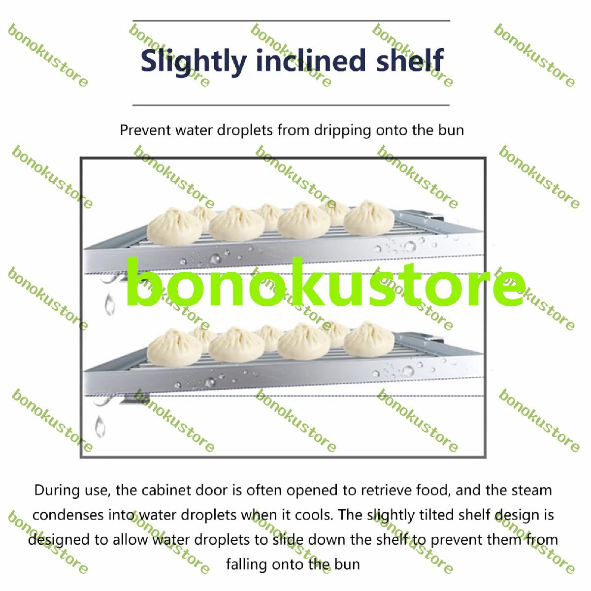 【多用途かつ効率的】当社の電気ホットフードウォーマーは、温めたり加熱したりする目的で設計されています。最大80個の調理済み(半調理済み)パンまたは冷凍パンを簡単に蒸すことができ、さまざまなおいしい食事に最適です。生パンを丸ごと蒸すのにはおすすめしませんのでご注意ください。