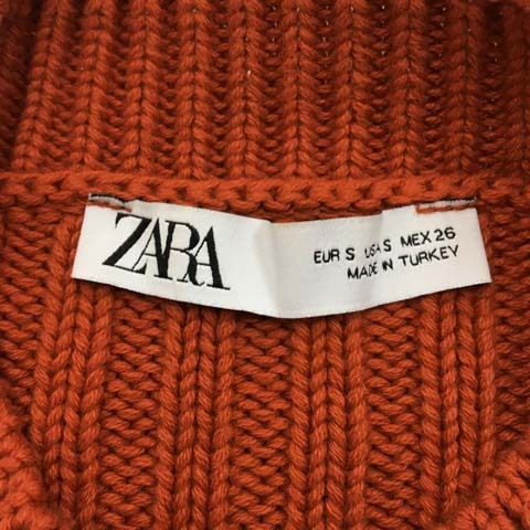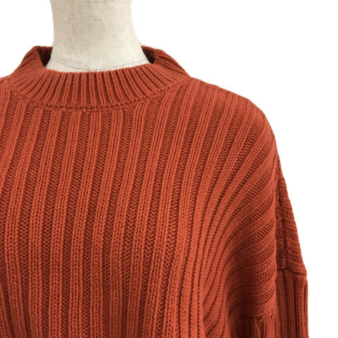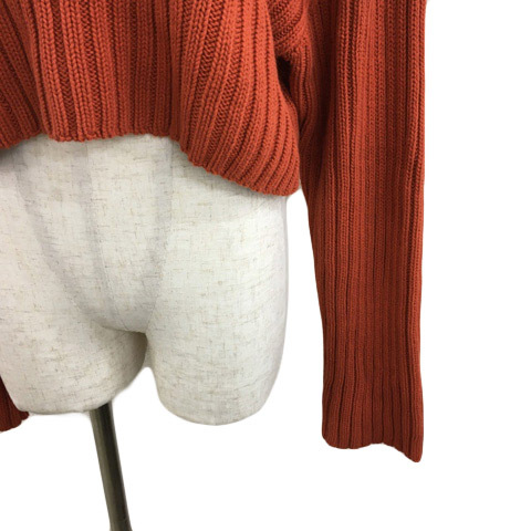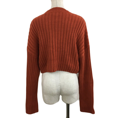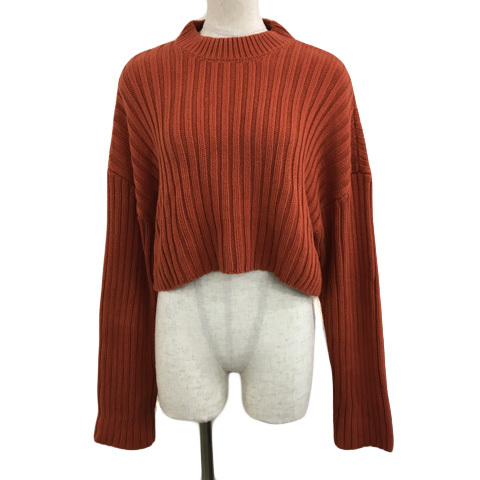 ザラ ZARA セーター ニット プルオーバー モックネック クロップド リブ 無地 長袖 USA S 茶 オレンジ ブラウン レディース