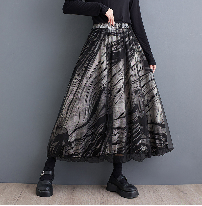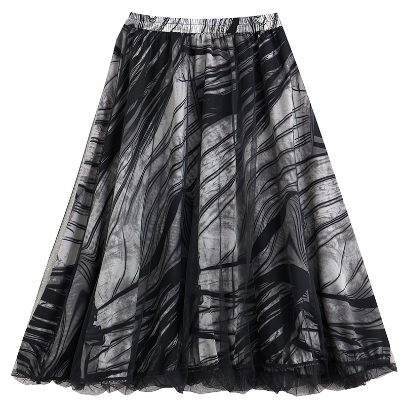 「同梱1万円送料無料」秋*新作*カジュアル*ゆったり大きいサイズ*オリジナル**ウエストゴム*チュールロングスカート*プリント柄