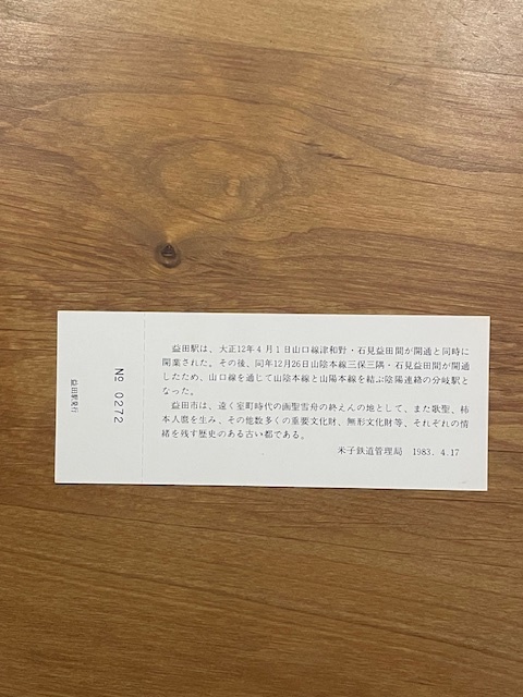 国鉄 益田駅開業60周年記念入場券 (管理番号63-28)