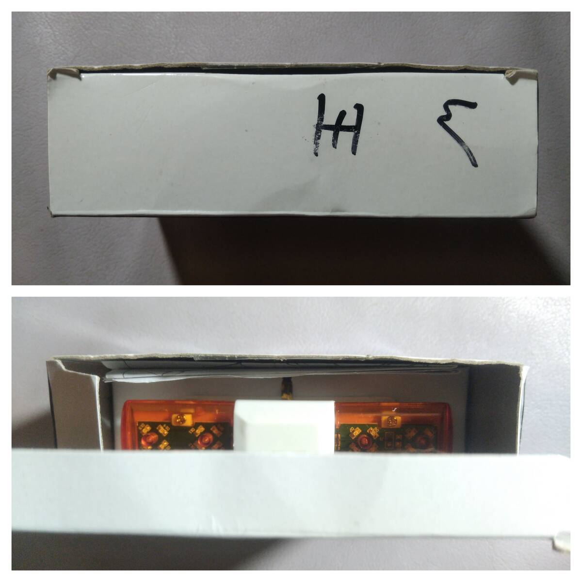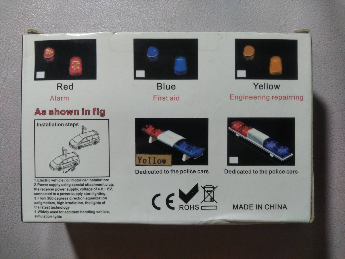 ◆写真1枚目、箱の表面のLEDライトは赤青になっていますが……写真2枚目、箱の裏面の中央下に「Yellow」と印刷されたシールが貼られており、また、見た目からして黄色のLEDライトと思われます。