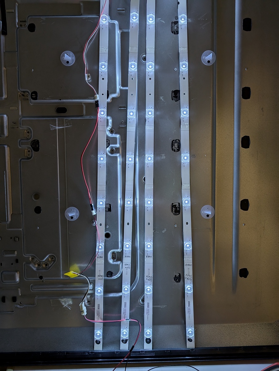 | ■全数テスト済みです。フレームからはがした後も点灯できていることを確認済みです。1列ずつの販売です。全部取り換えるには数量4で落札ください。同梱可能 技術サポート可 条件付返品可 テレビのパーツ |