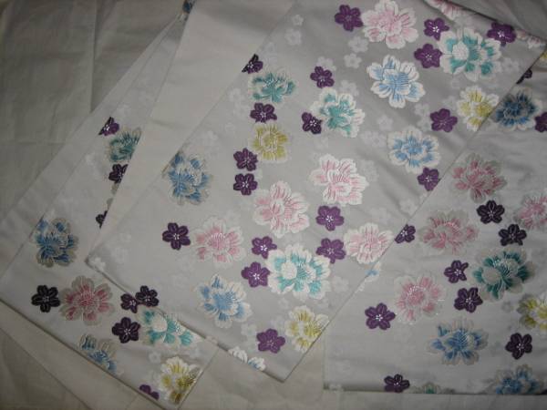 なお、振袖用とタイトルはつけていますが、振袖、訪問着、無地などのきものにもつかっていただける、柄が大きくなくおとなしい柄の出品もあります(出品者IDをクイックして一覧よりご覧くださいませ)(長さは、標準で、訪問着なら二重太鼓にしていただける長さは、当然、振袖なら変わりむすびにはしていただける長さです)