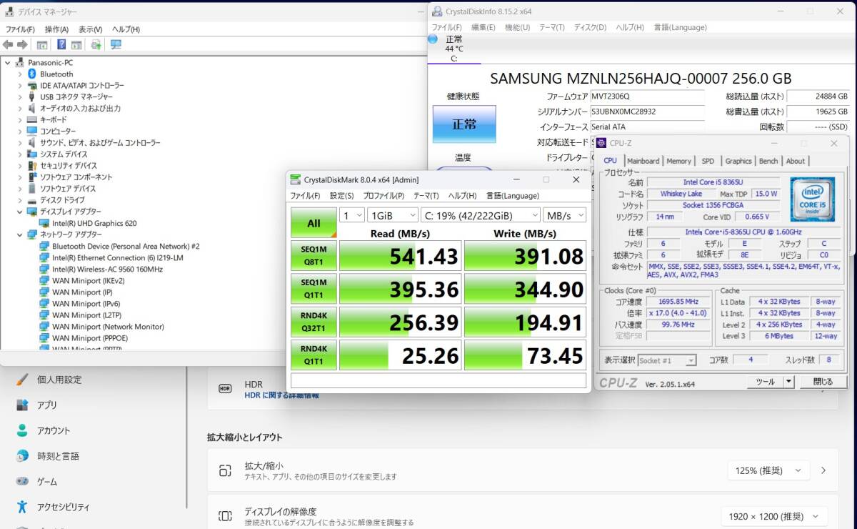 | CPU: 超高速 Intel 高性能 八世代Core i5-8365U 1.6Ghz、 4コア8スレッド (ターボ・ブースト利用時の最大周波数 4.1GHz) |