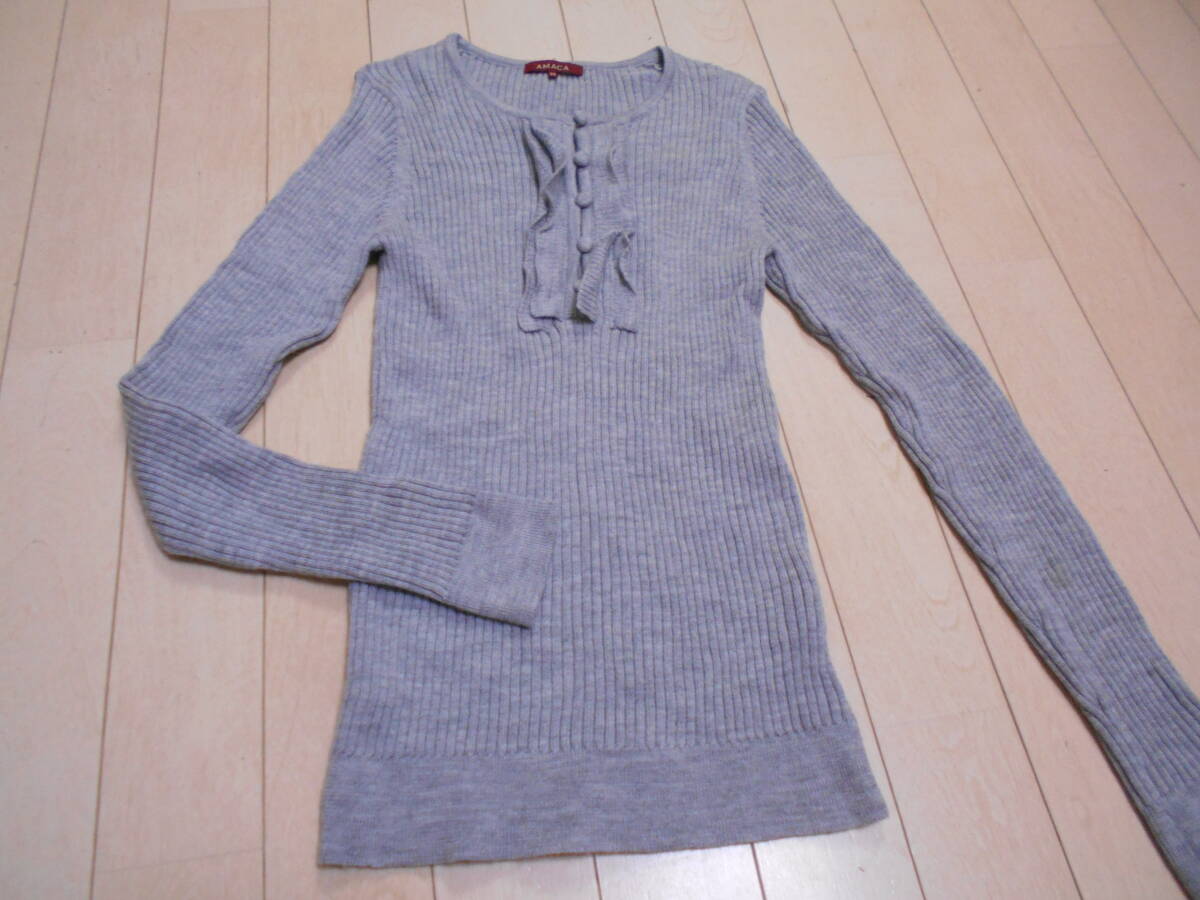 丈56身幅27 リブニットで横によく伸びます サイズ38 羊毛100% 三陽商会 グレー 左袖に少し汚れ その他は問題なくお使いいただける状態です