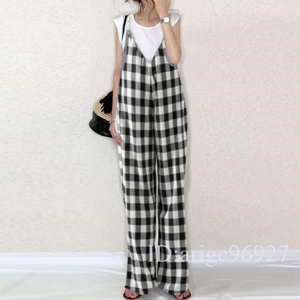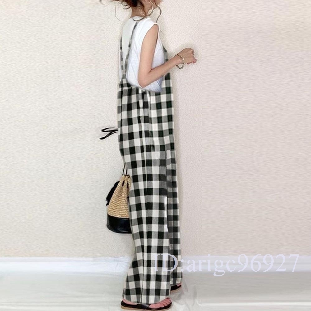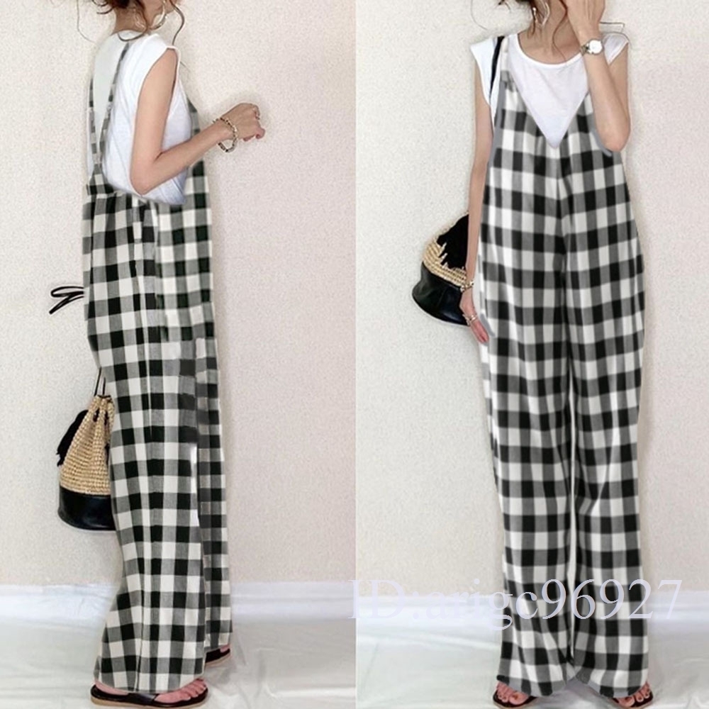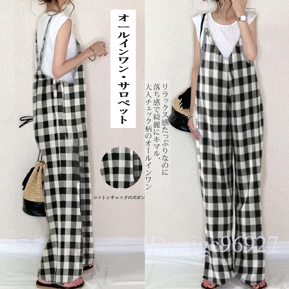 L50★サロペットレディース つなぎ オールインワン オーバーオール ワイドパンツ 春夏 着痩せ おしゃれチェック柄 フリーサイズ