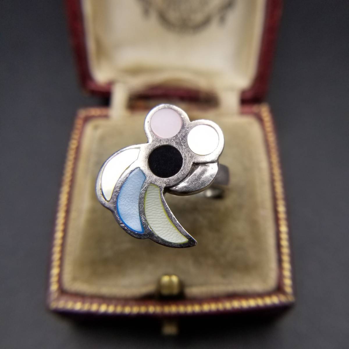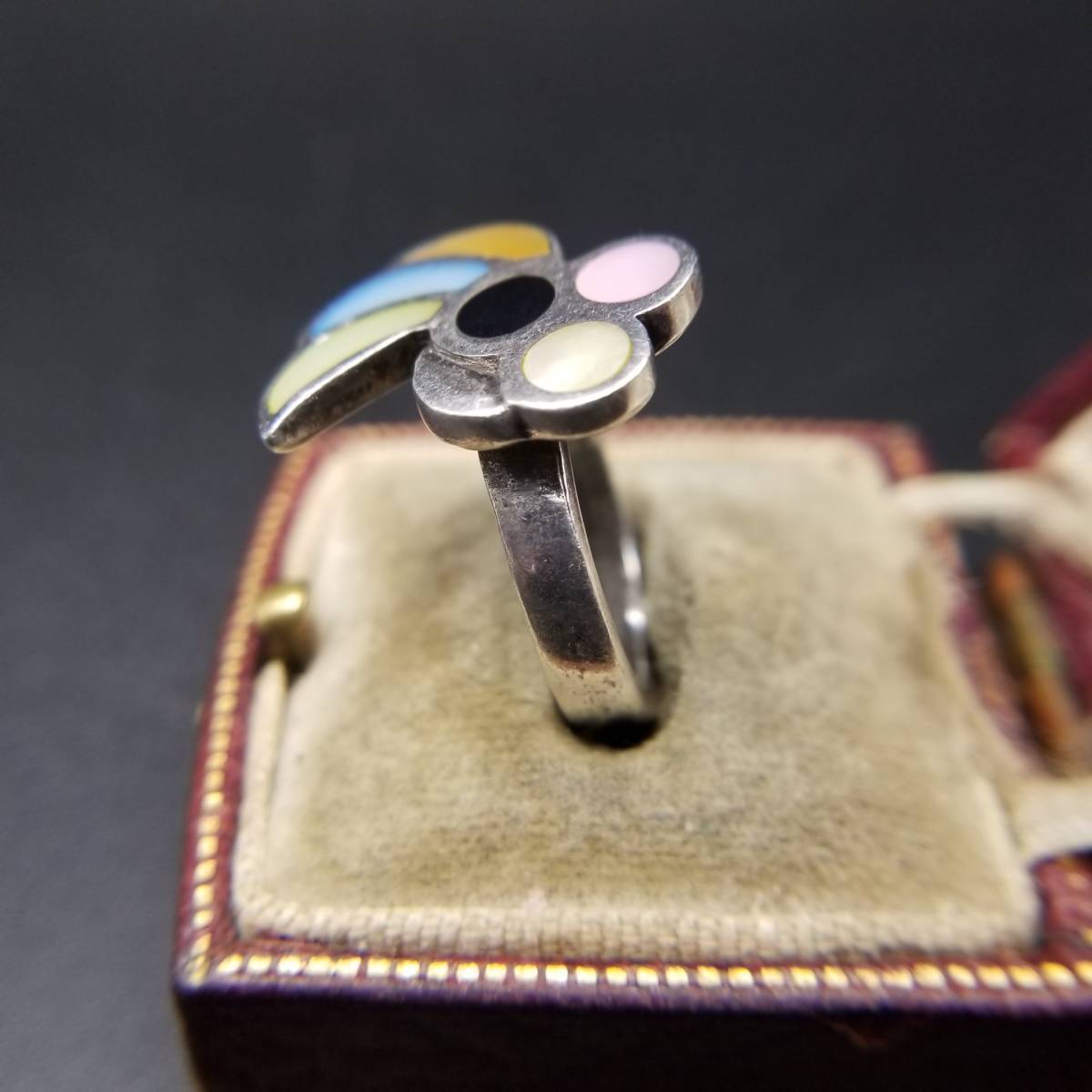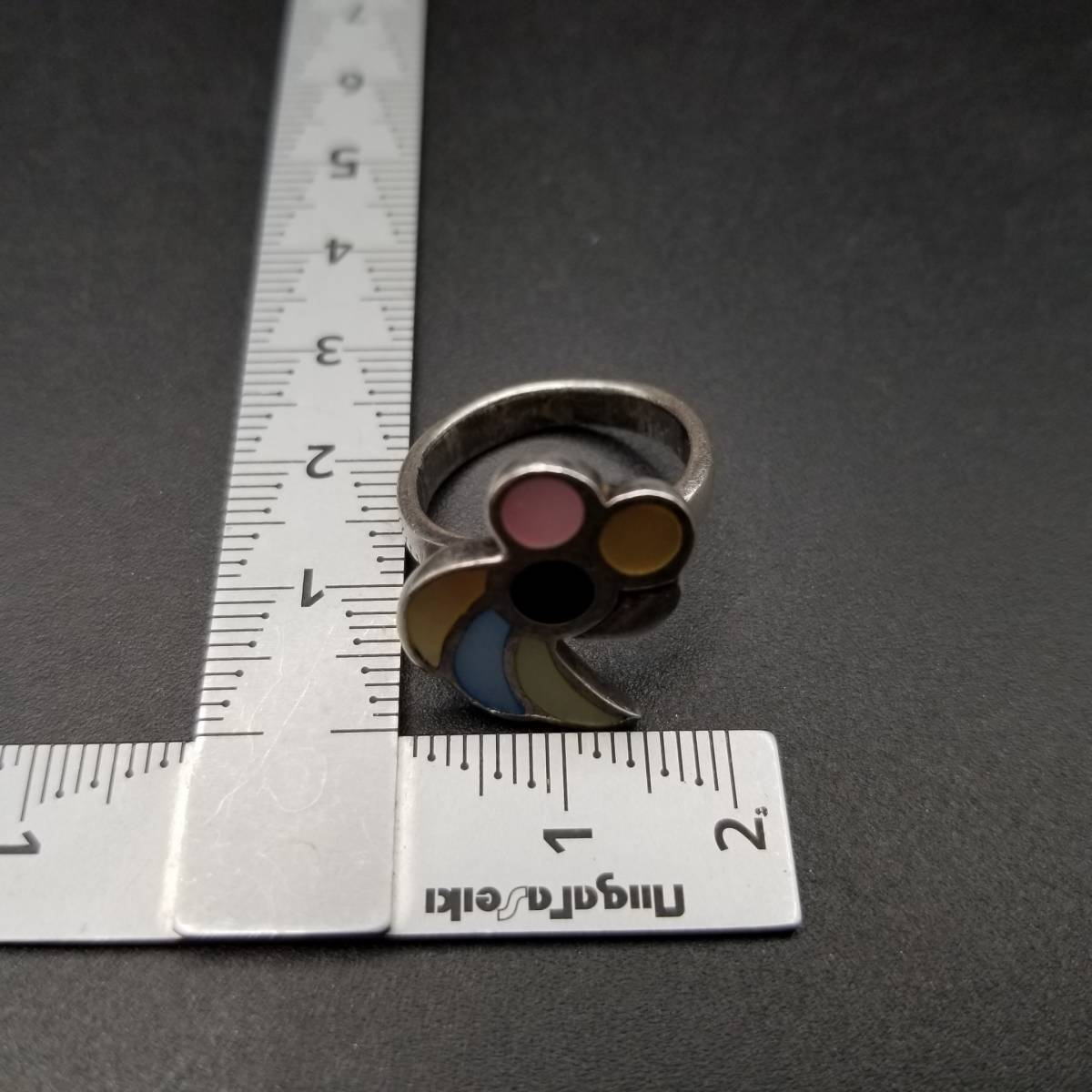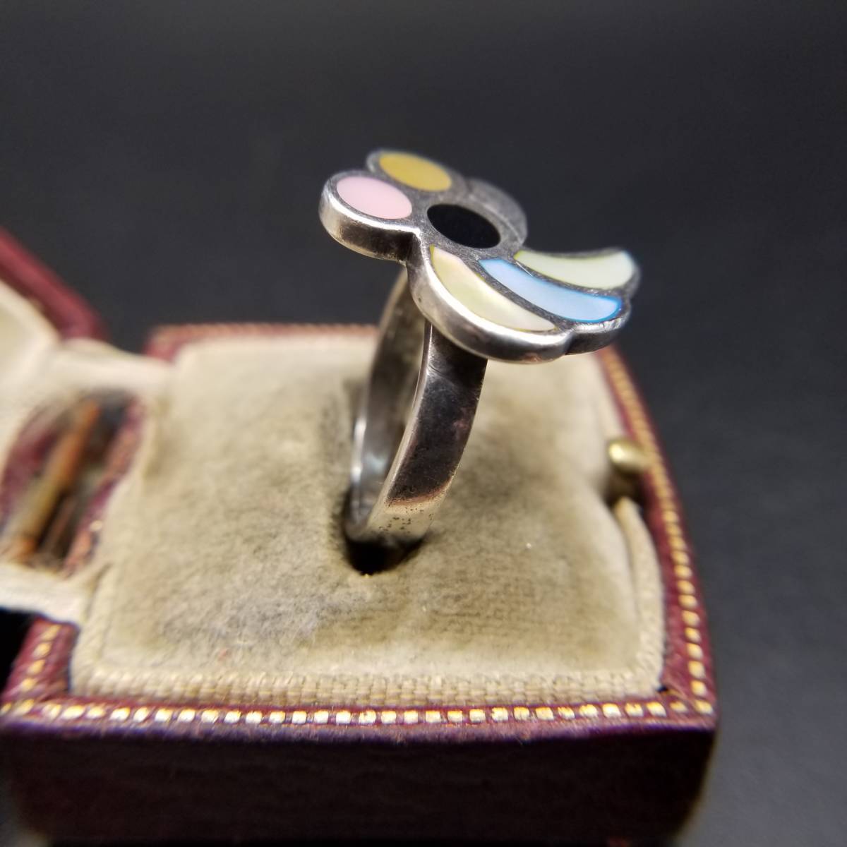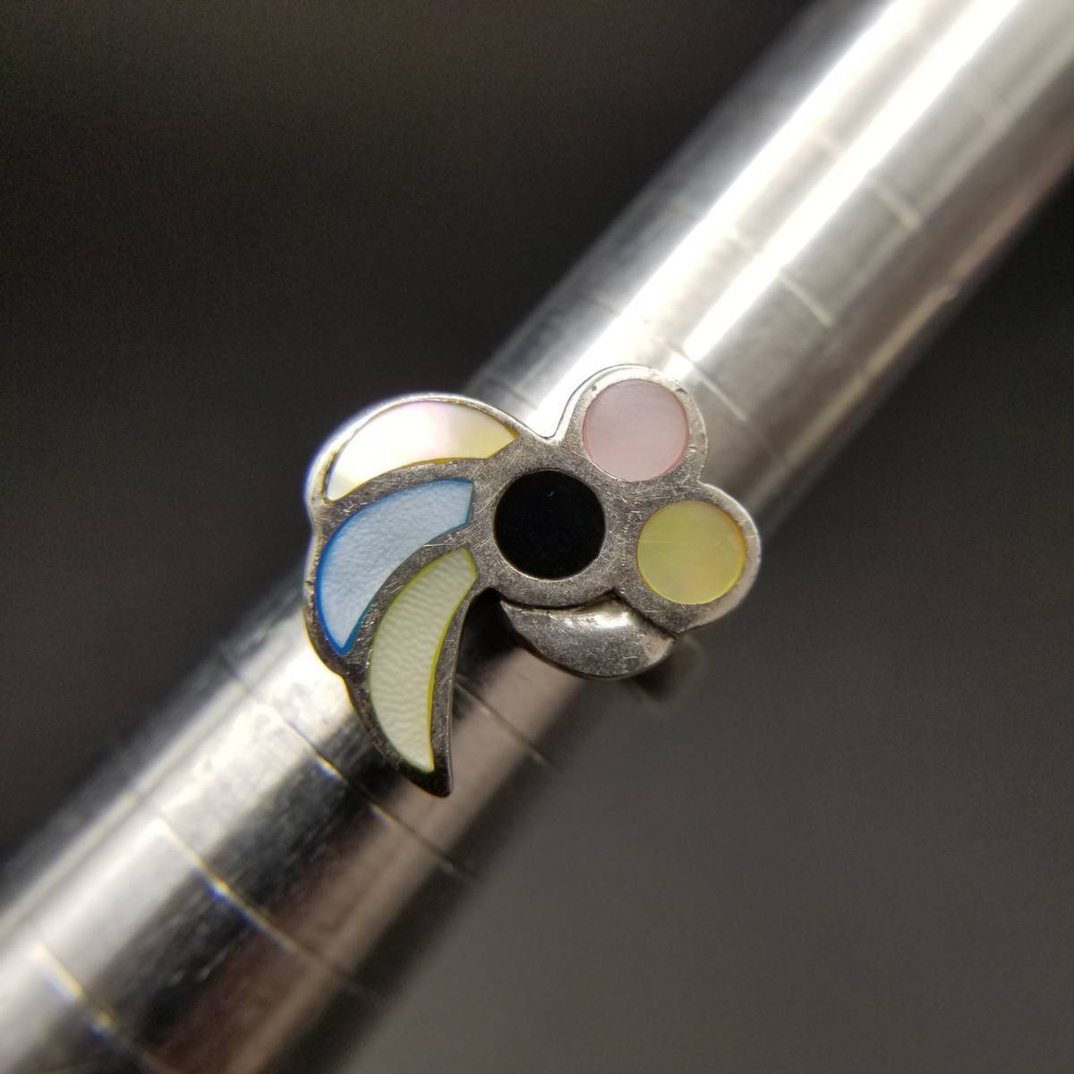 ×マルチカラー パステル インレイ モダンアート 925 シルバー ヴィンテージ リング 銀指輪 サウスウェスタンジュエリー 個性派 R12-US①