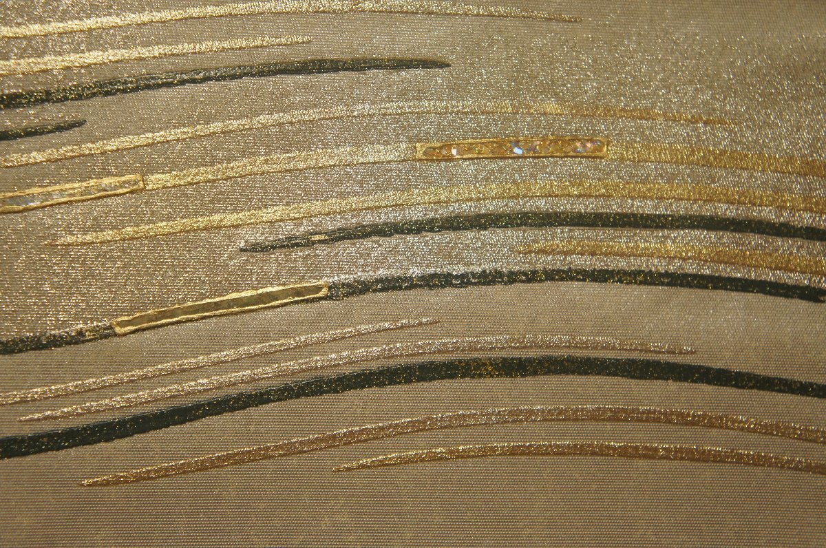 帯柄附太鼓柄 正絹アイボリー色銀箔地流線模様螺鈿入り