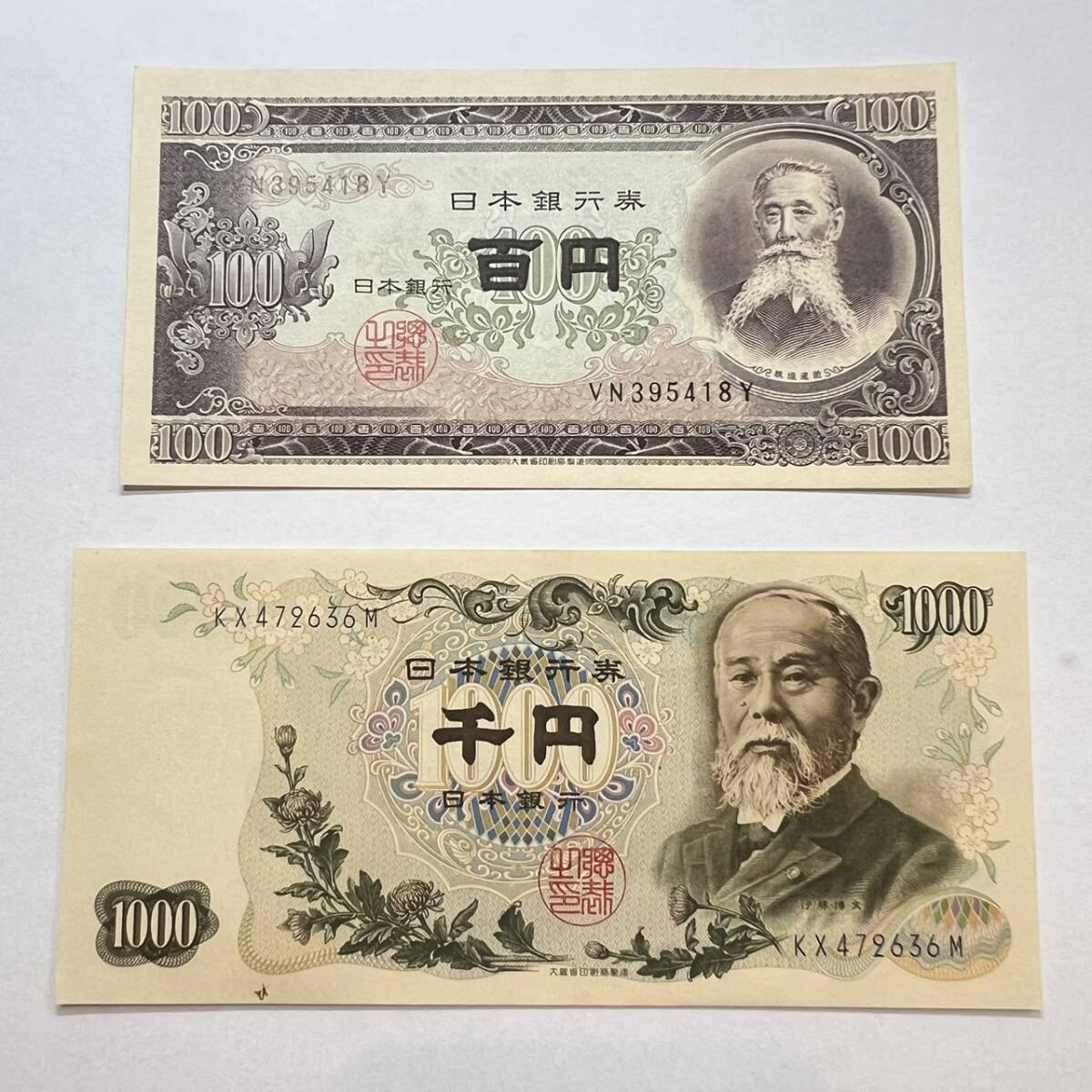 【同梱可】ピン札 板垣退助 100円 伊藤博文 1000円 2枚セット 日本銀行券 アンティーク コレクション 紙幣 古銭 札 6MI0727
