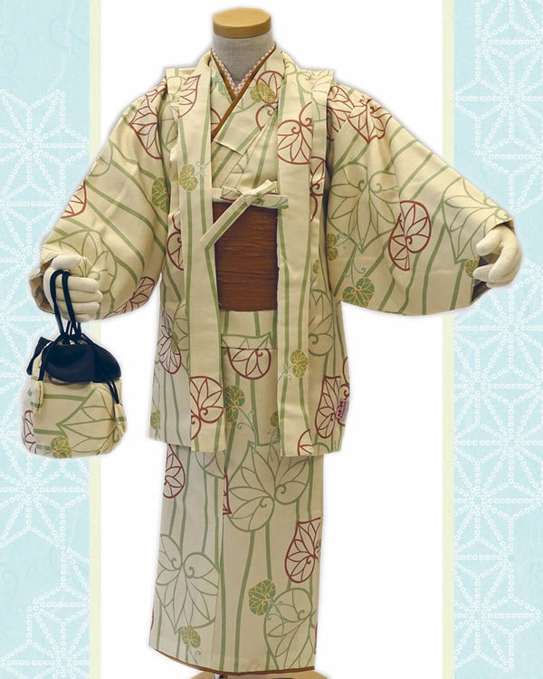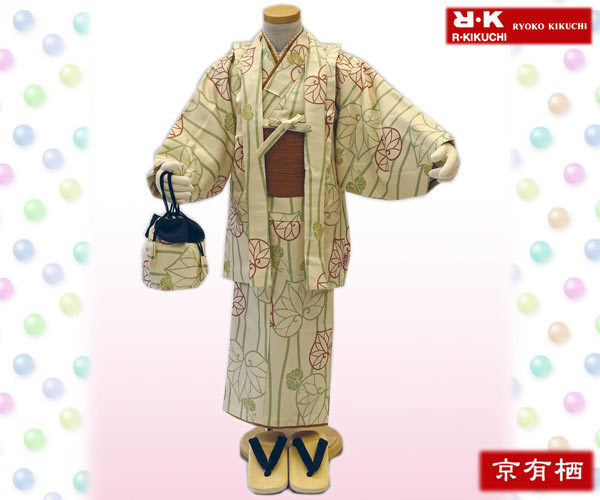 京有栖☆男の子着物アンサンブル【R・K】9点セット☆120サイズ☆508☆ベージュ系☆葵柄
