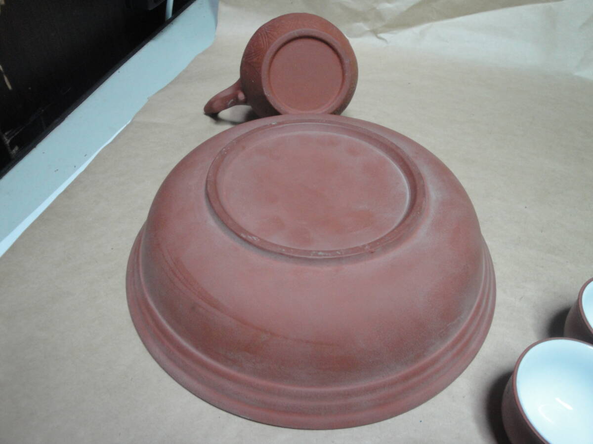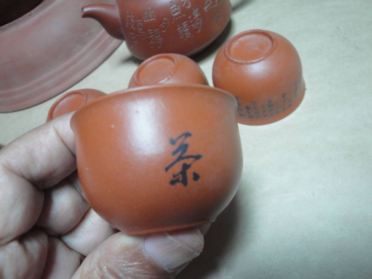 茶道道具《急須・小型茶碗(6個)・受皿・水入れ:計9個》☆です。1、急須:サイズ約11.7×8×7.9cm、重さ約100g、写真5のような窯印あり。2、小型茶碗:サイズ約口径4.9×3.3×底部径2.5cm、重さ約30g、6個、写真8・9のような記載あり。3、受け皿:サイズ約口径18.5×5×底部径9.8cm、重さ約500g、窯印なし。4、水入れ:サイズ約12×8.5×底部径5cm、重さ約130g、窯印なし。写真のものが全てです。写真で判断願います。送料はゆうパック80サイズの料金です。発送は原則週2回です。お手数をおかけしますがご入札の前に、必ずフォローリスト(自己紹介欄)と当該記載内容のご確認をお願いいたします(2日以上連絡がつかないときも,お手数をおかけしますがフォローリスト(自己紹介欄)をご覧の上ご連絡をお願いいたします)。中古品でございますのでノークレームでお願いいたします。問題発生時の対応につきましては、誠意をもって対応させていただきます。メールをいただければ5日程度の取置き(同梱)はOKですのでぜひご利用ください。落札後7日以上連絡が取れないときは自動的にキャンセルさせていただきます。(注)①迅速に対応するため、“「取引ナビ」:取引メッセージ”でお願いいたします。②ゆうパック(着払いの対応はいたしません)ご利用の場合、請求送料は郵便局への持込み割引を含み一切割引の無い料金とさせていただきます(実際の発送料金とは、120円の差があります)。③状態の判断はあくまでの私見ですのでご理解願います。④評価の悪いが5個以上の方、新規の方は、お取引を確実にしていただける旨ご連絡ください。ご連絡のない場合は削除させていただきます。ご入札後のキャンセルはできませんので十分に注意してご入札に参加願います。⑥領収書の発行はできません 。⑦万一、不良品発生時は、誠に申し訳ありませんが実費(ご落札金額、送料、振込手数料)のみにて対応をさせていただきます。⑧万一、落札品が欠品の場合は、誠に申し訳ありませんが実費(送金額、送料、振込手数料)のみにて対応させていただきます。【必ず自己紹介をお読みください。対応や発送できない期間などご案内しております】