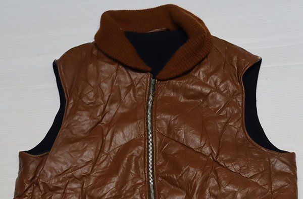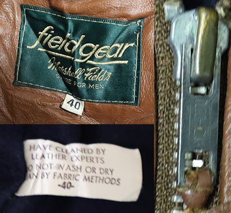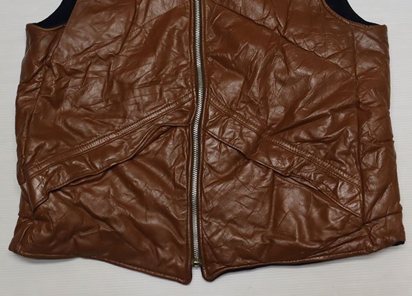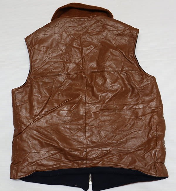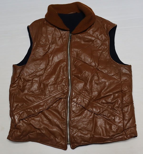 アメリカ買い付けの80年代頃のアメリカ製(表記はございませんが)FIELDGEARのレザーベストの裏地はウールの茶系でPRIDE製ZIPです。