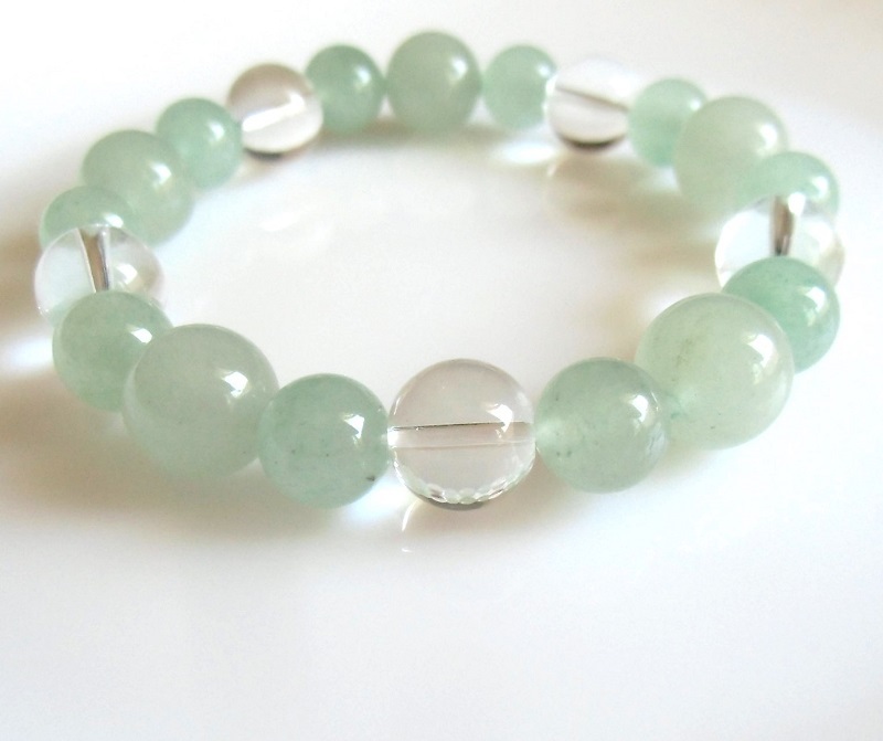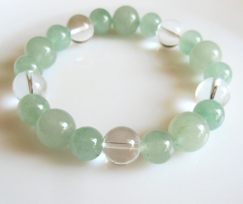 五芒星翡翠と水晶ブレスレット