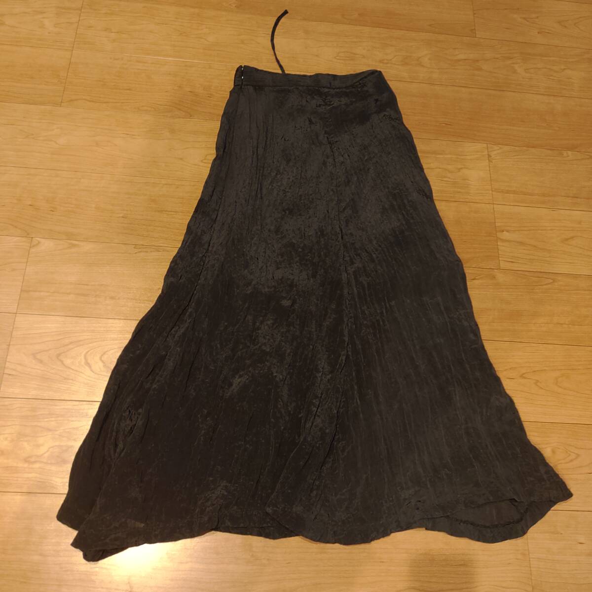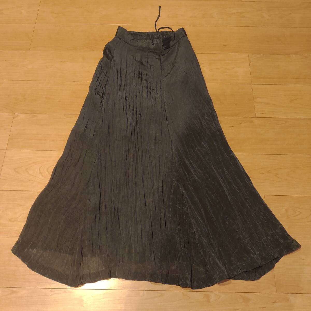 CITY しわ加工 美スタイル 上品 ロング マーメイド風 フレア スカート 1 ブラック 黒 です。