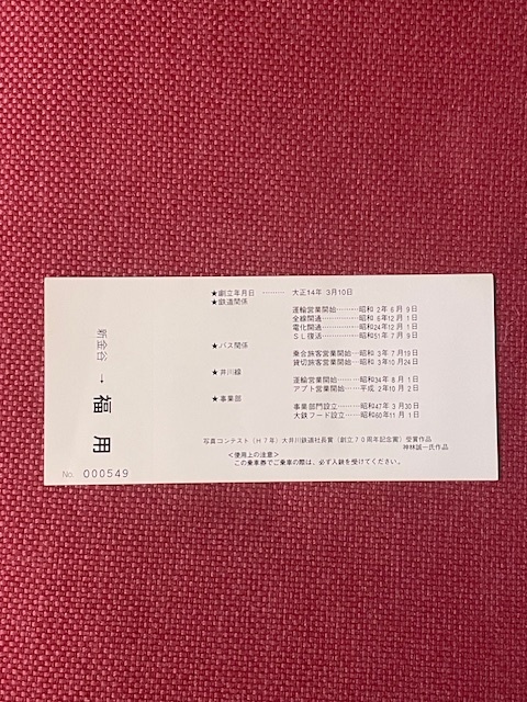 大井川鉄道創立70周年記念乗車券 (管理番号58-7)