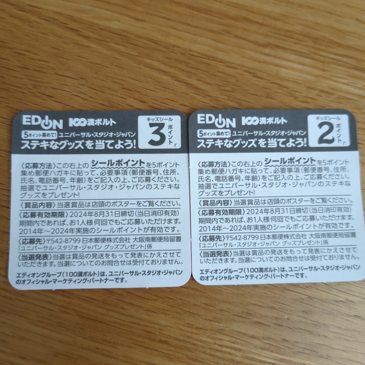 EDION 100満ボルト ユニバーサル・スタジオ・ジャパン キッズシール 2枚セット ミニオンズ ミニオン ユニバ エディオン