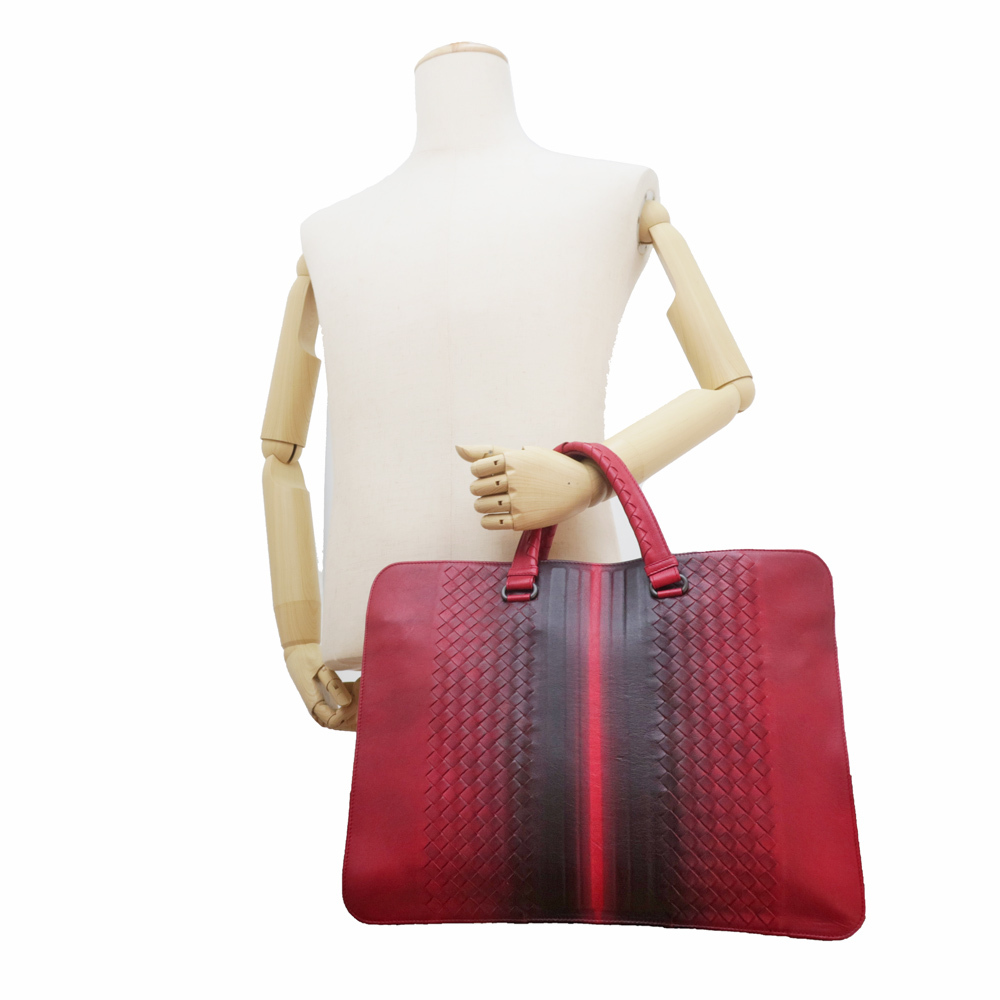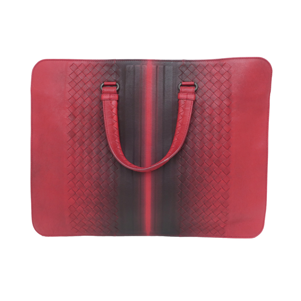 【名東】ボッテガヴェネタ トートバッグ ハンド イントレチャート グラデーション ビジネス レッド 赤 メンズ