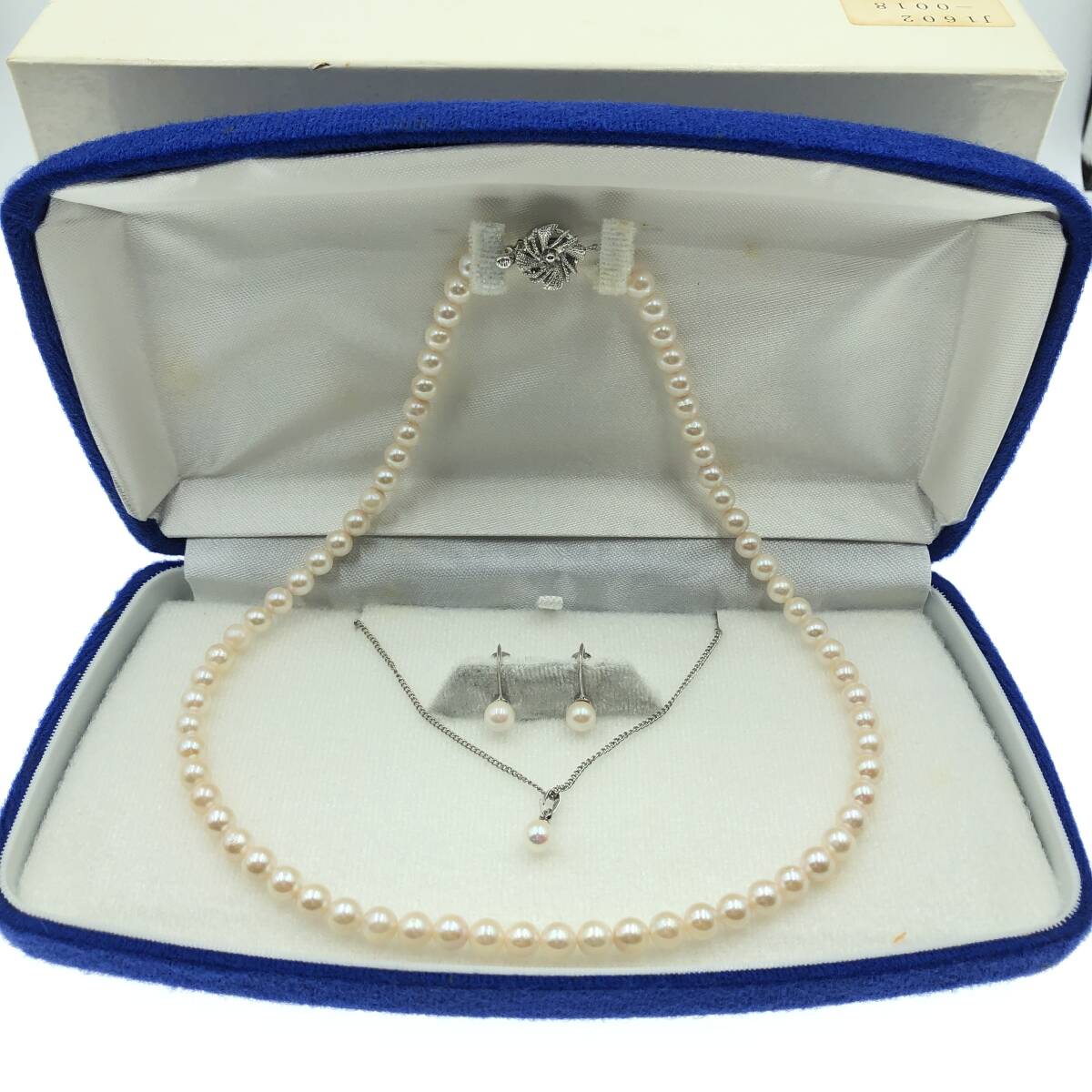 ご覧いただきありがとうございます。 詳しくは下記をご覧ください。 【品名】:パールネックレスイヤリング3点セット 【素材】:真珠 【サイズ】 ・ネックレス1:全長約42cm/総重量約20.6g/約5.5-6.0mm ・ネックレス2:全長約45cm/総重量約2.2g/約5.5mm ・イヤリング:約5.5mm/総重量約1.6g ※素人採寸になりますので若干の誤差はお許しください。 【付属品】:箱、ケース 【状態】:使用・長期保管に伴う劣化がございます。詳しくは画像にてご判断ください。 ※あくまで素人の見立てになりますので予めご了承下さい。 ※自宅保管品ですので外装に多少の小キズ、スレ等がある場合がございます。完品をお求めの方はご入札をお控え下さい。 ※気になる点等ございましたらご入札前に予め質問にてお問合せ下さい。 ※画像と商品説明、下記の注意事項を必ずご確認の上でのご入札をお願い致します。 |