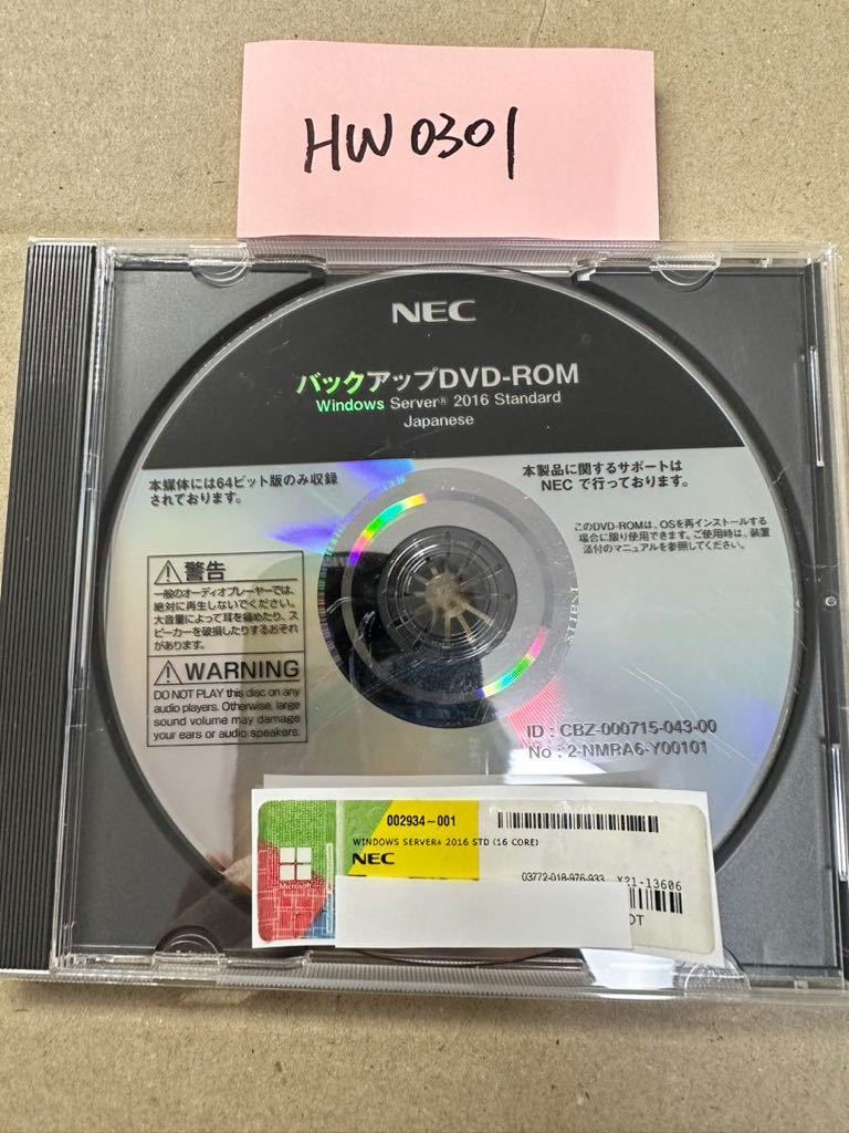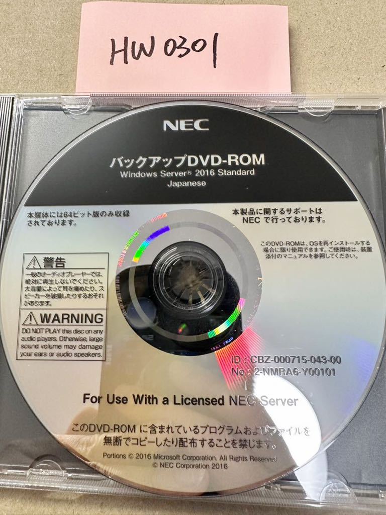 HW0301/中古品/正規品NEC サーバー用 バックアップDVD-ROM Windows Server 2016 Standard Japanese 64ビット/プロダクトキー付