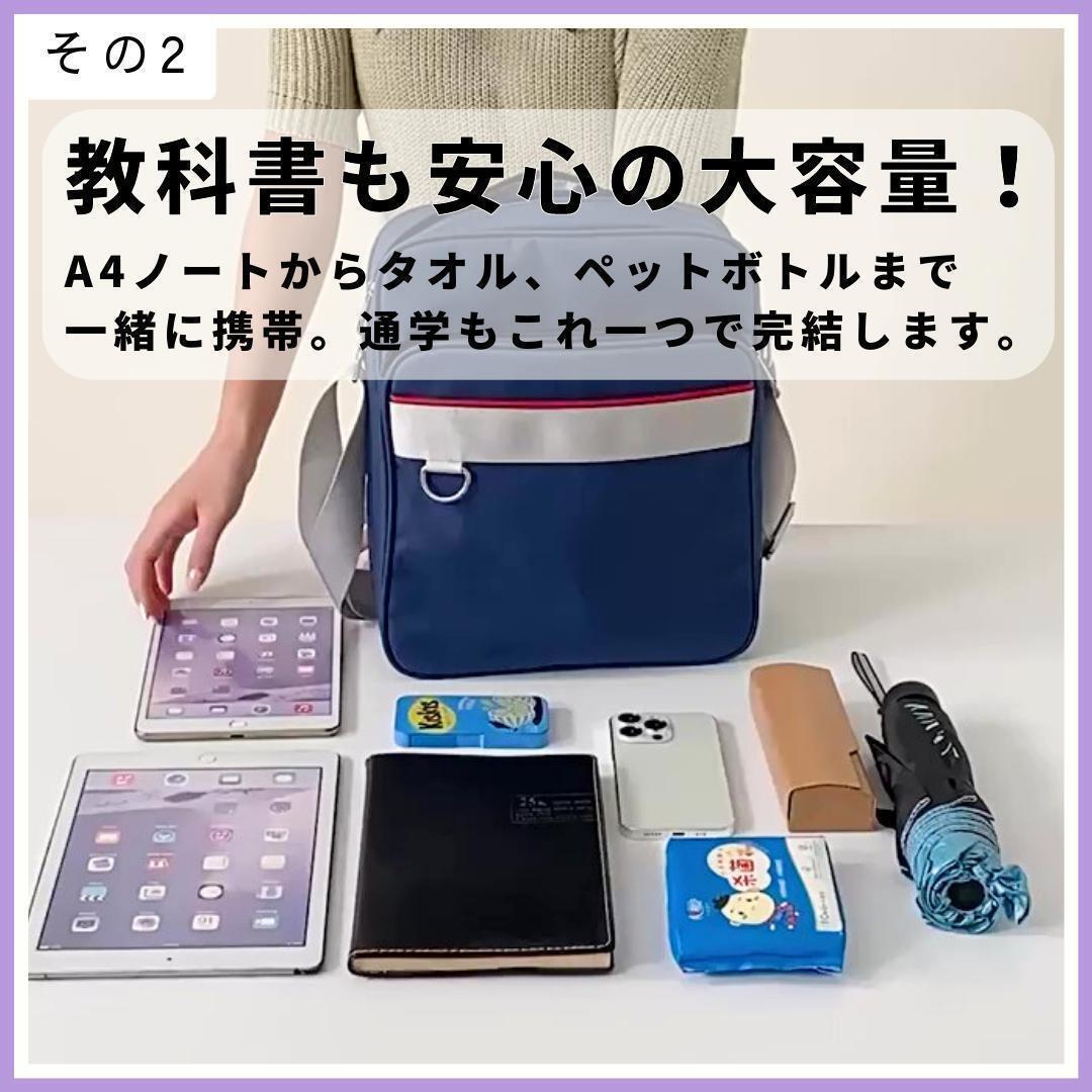 こちらの商品は、大人気のトレンドアイテム、ショルダータイプのスクールバッグです。大人気縦型スクールバッグとして、A4ノート、教科書、iPad、ペットボトル、タオルなどを収納できる大容量サイズで通学に最適です。女子中学生、女子高生に人気で、お好みのキーホルダーをつけることで個性を表現できます。