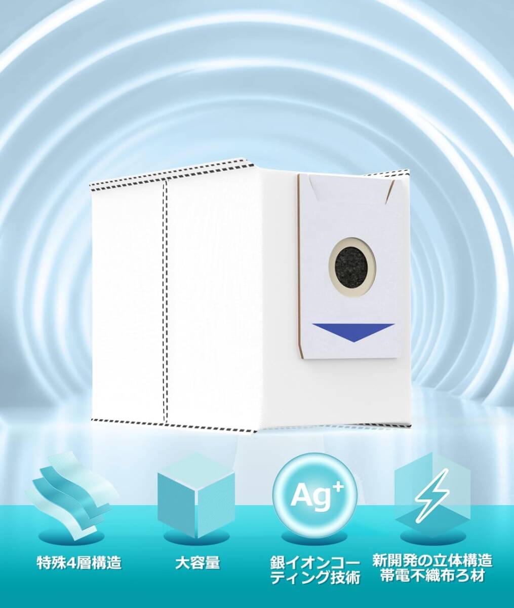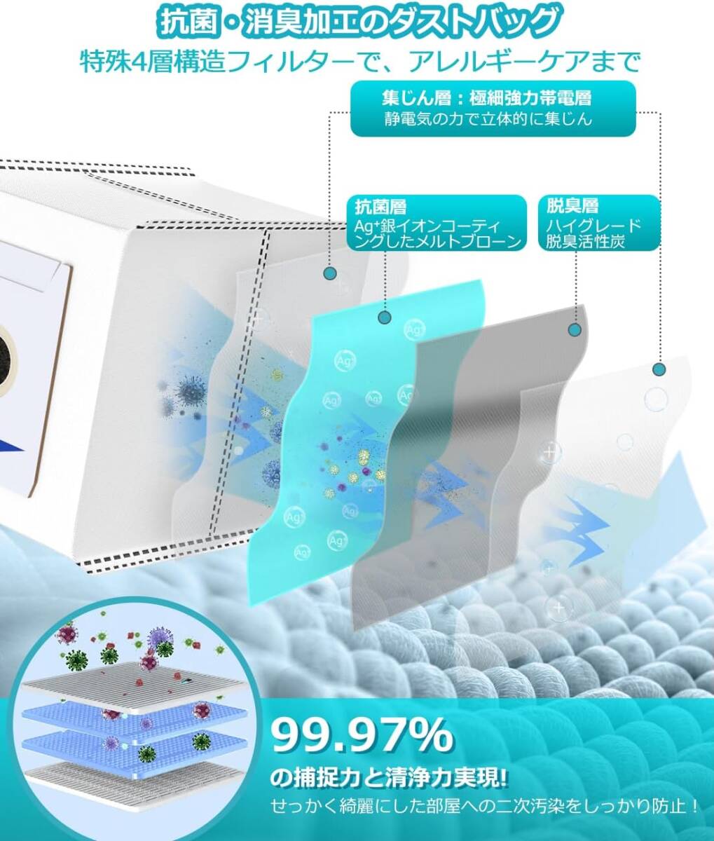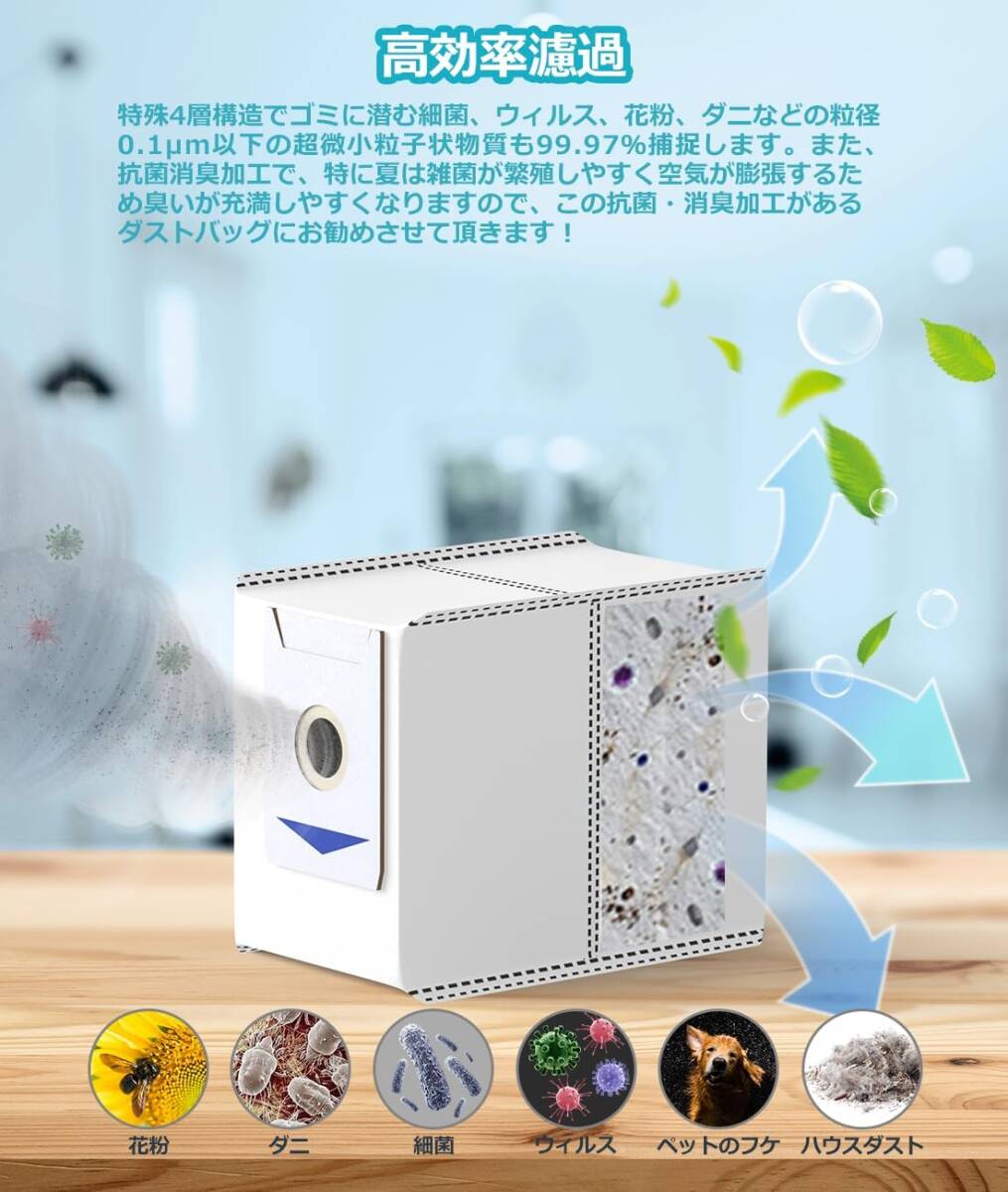 【Ag銀イオンコーティング技術で除去力と清浄力向上】大容量真空バッグ交換用ダストバッグ付き自動集塵。クリーンベース(自動ごみ収集機)側の紙バックに排出されたゴミをしっかり集めて、メルトプローンにAg銀イオンをコーティングすることでゴミに潜む細菌、ウィルス、ダニなどの有害物質をしっかり除去します。家族の健康をしっかりガードします!