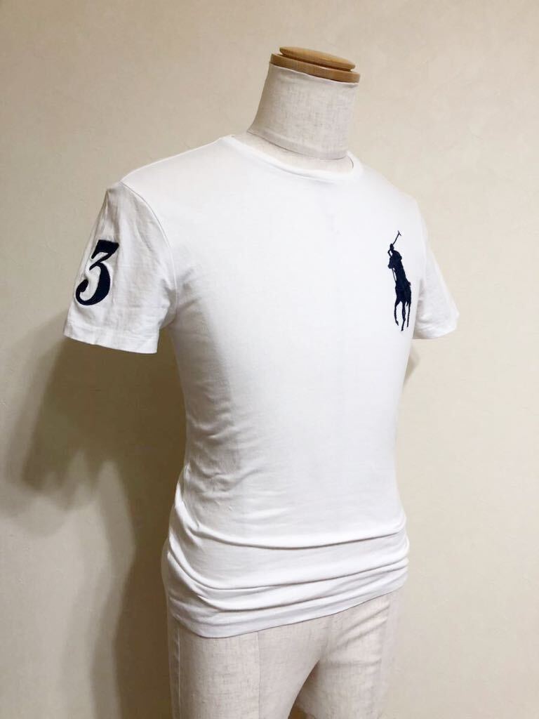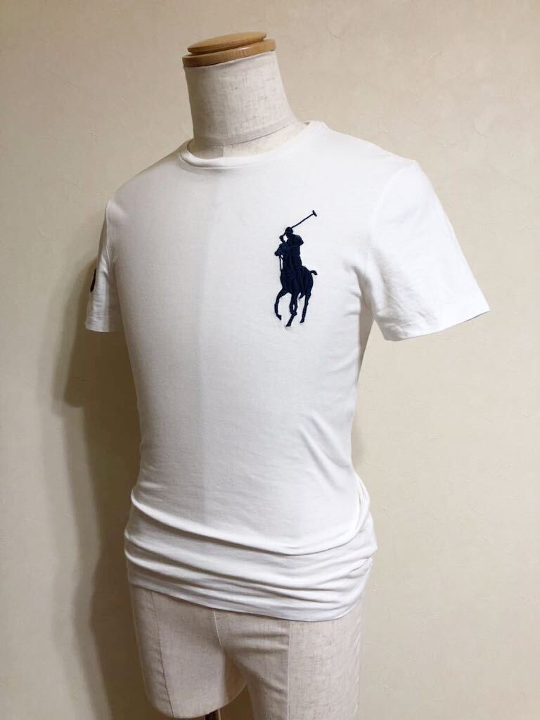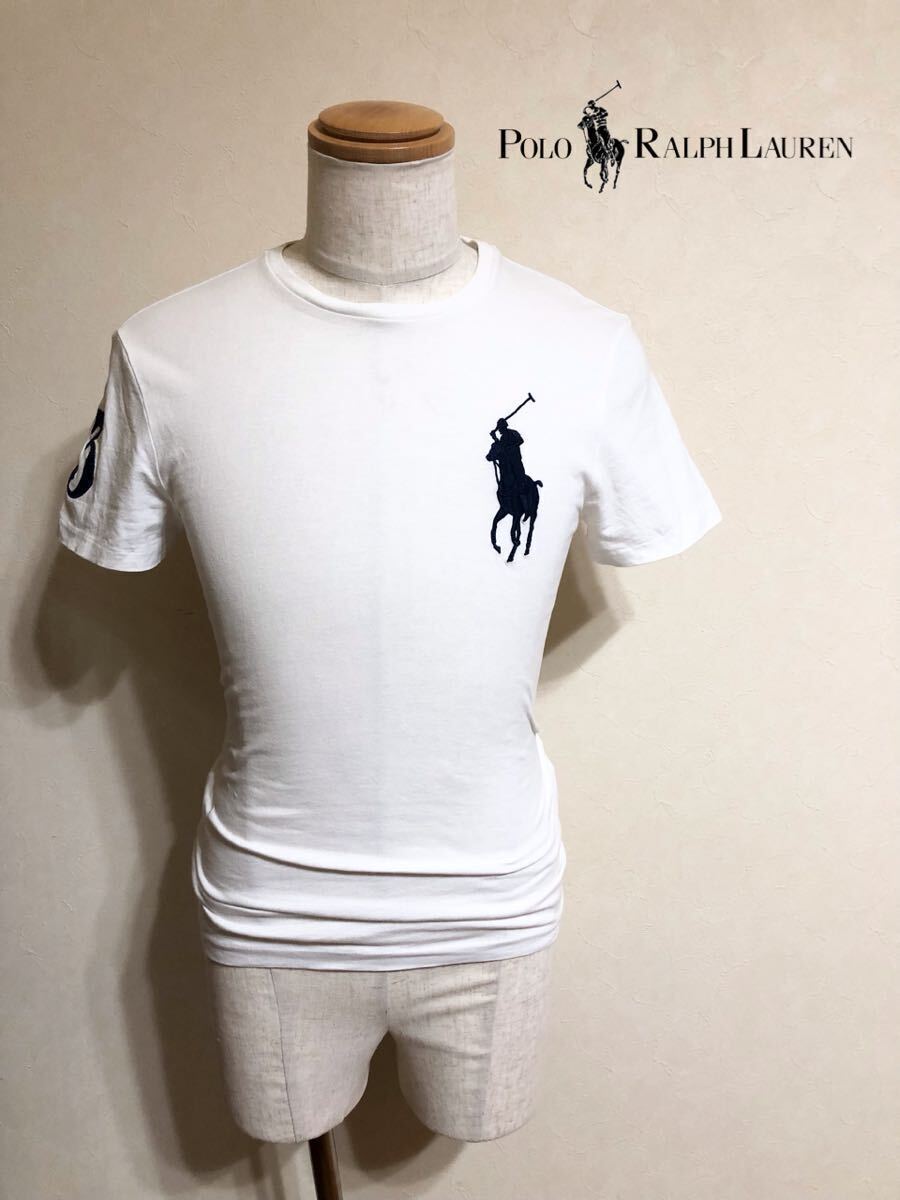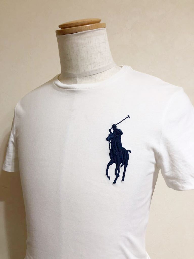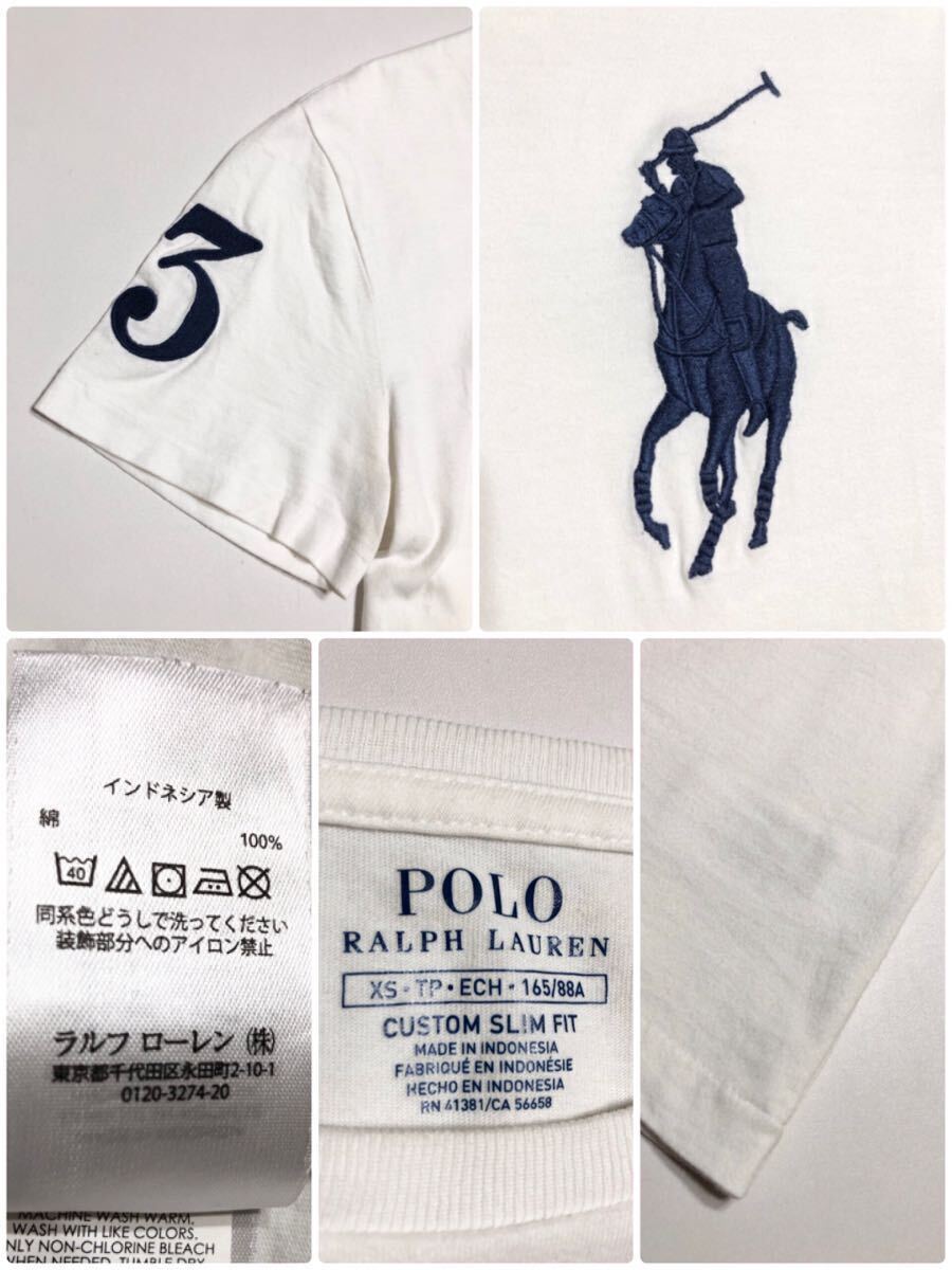 【良品】 Polo Ralph Lauren ポロラルフローレン ビッグポニー クルーネック Tシャツ トップス サイズXS 半袖 白 165/88A カスタムフィット