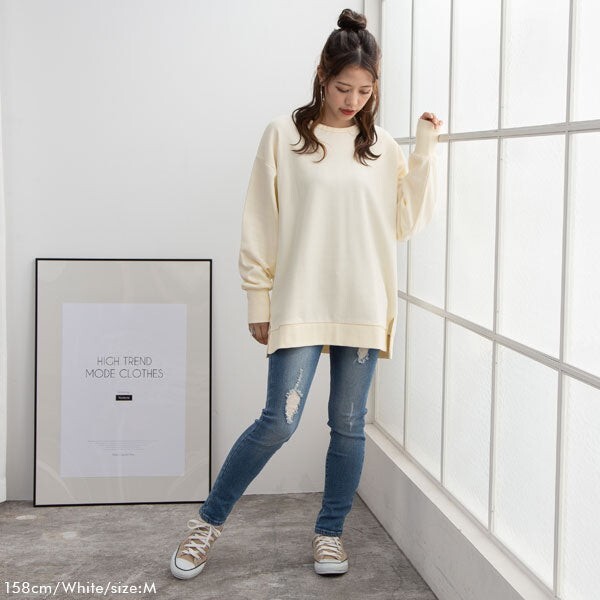 サイドスリット入りのチュニックトップスが登場。 前後差のあるお尻まで隠れる丈で体型カバー力も抜群! 中にロンTをレイヤードしたスタイリングもこなれ感が出てオススメ。