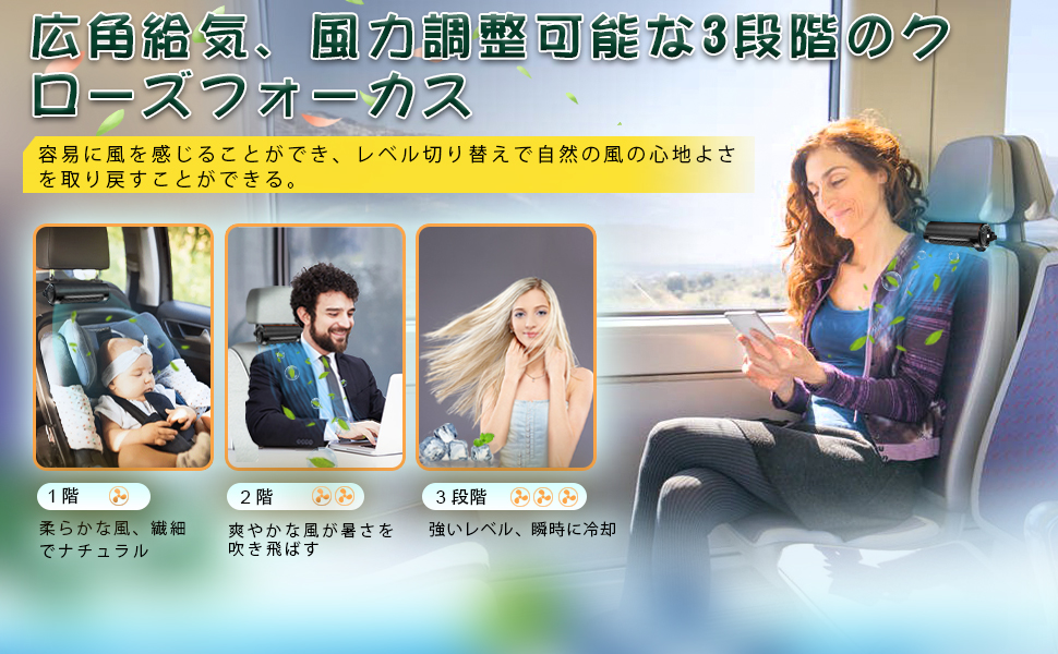 夏の暑い車座席に設置して、背中に送風できる座席用クールファンが登場します。コンパクトの体が小さくて空間を占めなくて、車内に置いて、見えないように邪魔しません。ヘッドレストに取り付けることで、背中や頭をシートにつけても本体が首に当たることなく使用することができます。この扇風機とエアコン併用すれば冷房効率をアップでき、涼しい雰囲気を与えます。