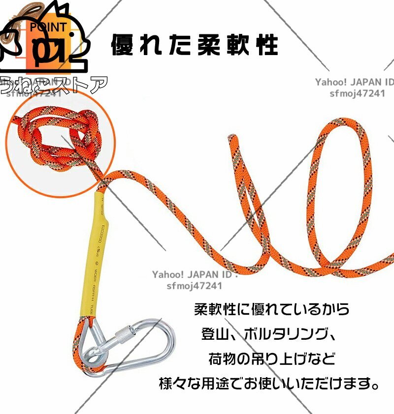 特!登山 クライミング クライミングロープ 多目的ロープ ザイル ロープ アウトドア カラビナ フックボルダリング 消防