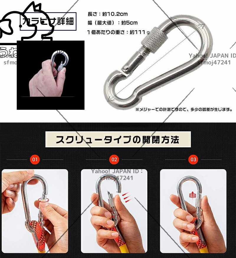カラビナ:重さ111g、長さ10.2cm、幅(最大値)5cm