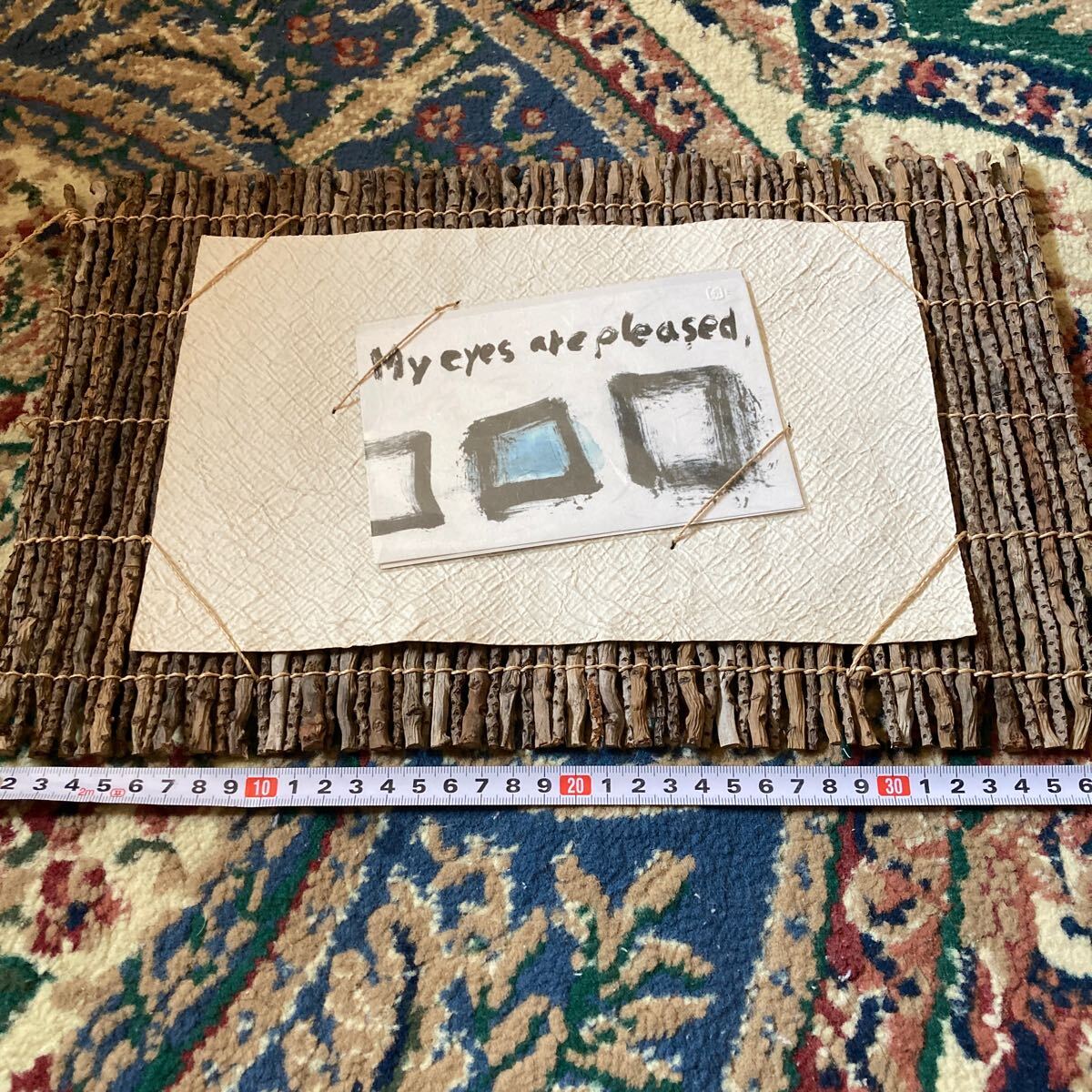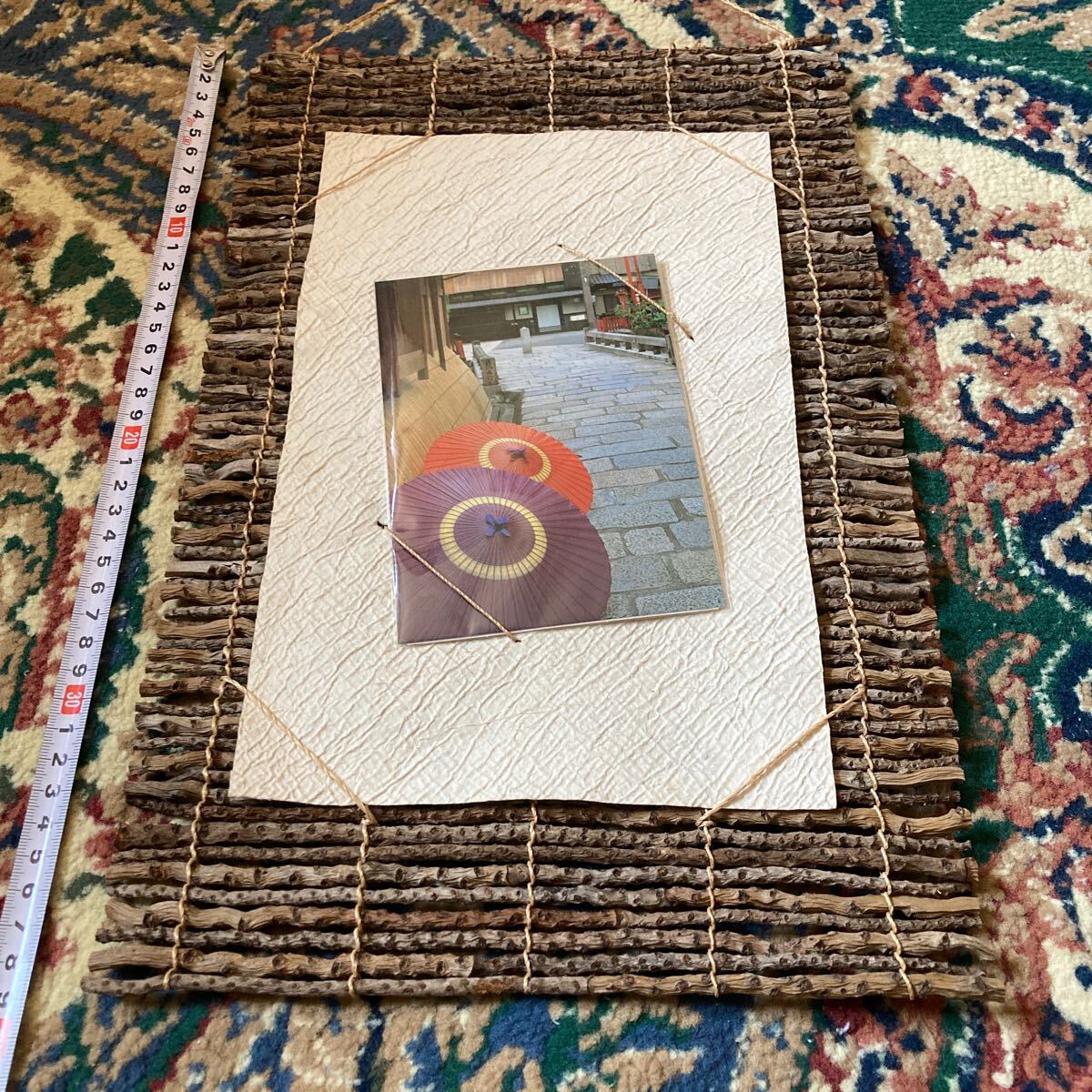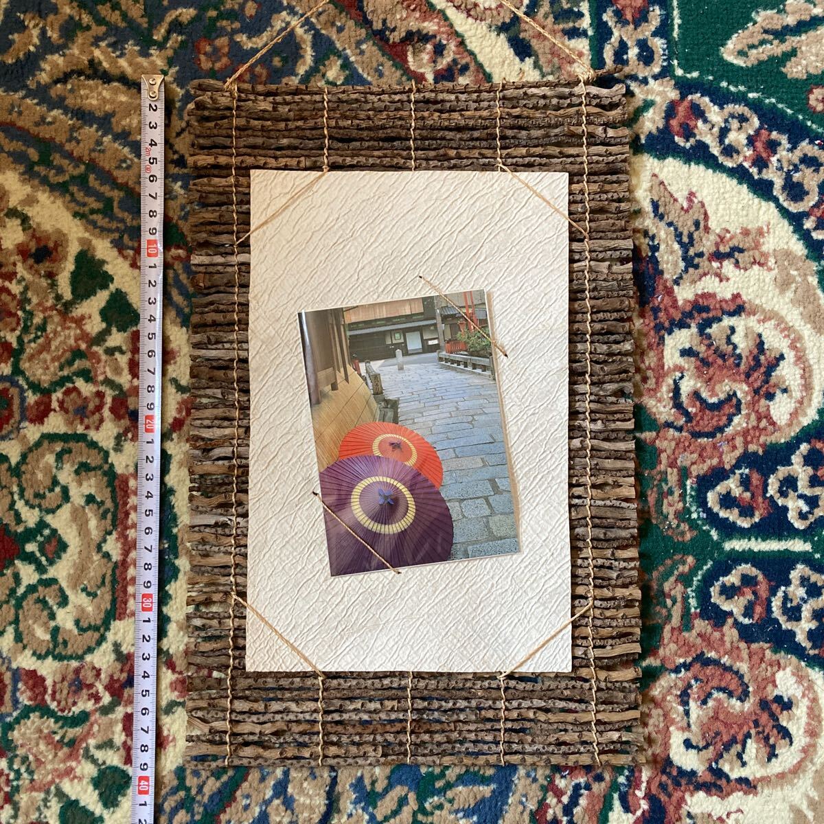 インテリア小物 ☆ レア貴重 手作り田舎風 木片木材額装・壁掛け飾 お好きな写真やポストカード等 中央にお飾り下さい 昭和レトロ