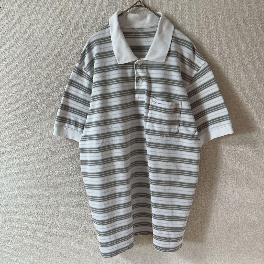 R1 NIKE ボーダー ポロシャツ 半袖 鹿の子 Lメンズ 白
