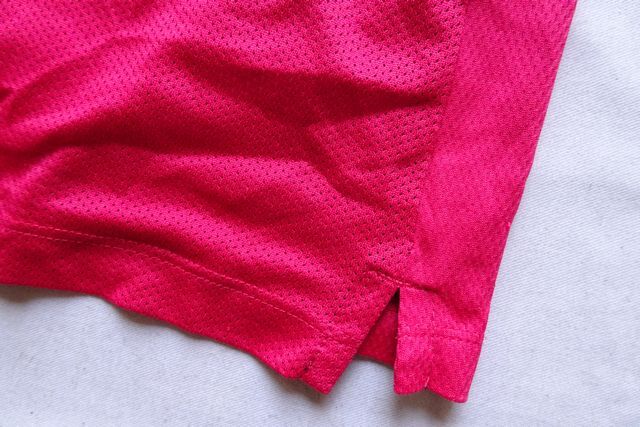 袖下、身頃脇から後身頃、メッシュ系素材切替で、通気性抜群です。
