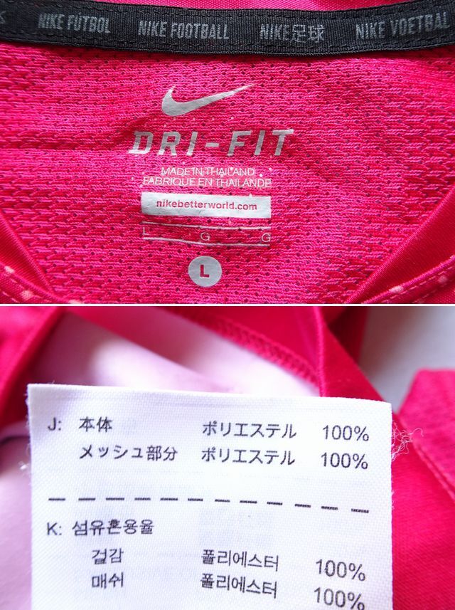 NIKE DRI-FIT/ナイキ/FOOTBALL/サッカー/半袖Tシャツ/プラクティスシャツ/速乾性/メッシュ素材切替/マゼンタピンク/Lサイズ(8/9R)