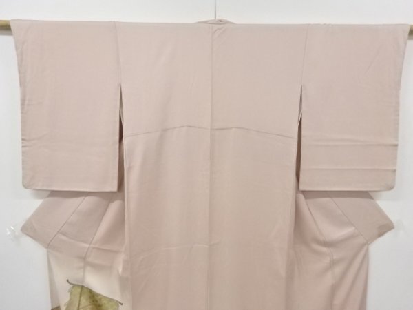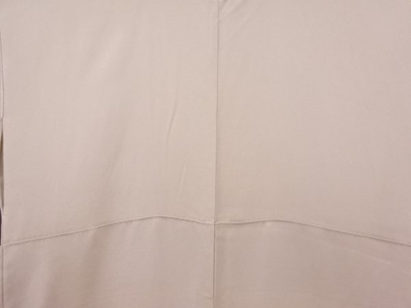 衿は広衿です。紋は有りません。共八掛で柄入りです。掛衿山に薄くすみが有ります。右袖後袖付横に薄アクが有ります。その他、薄点くすみが多少有ります。状態は良いです。着用可能です。採寸・検品:田村、岩井 撮影:森野