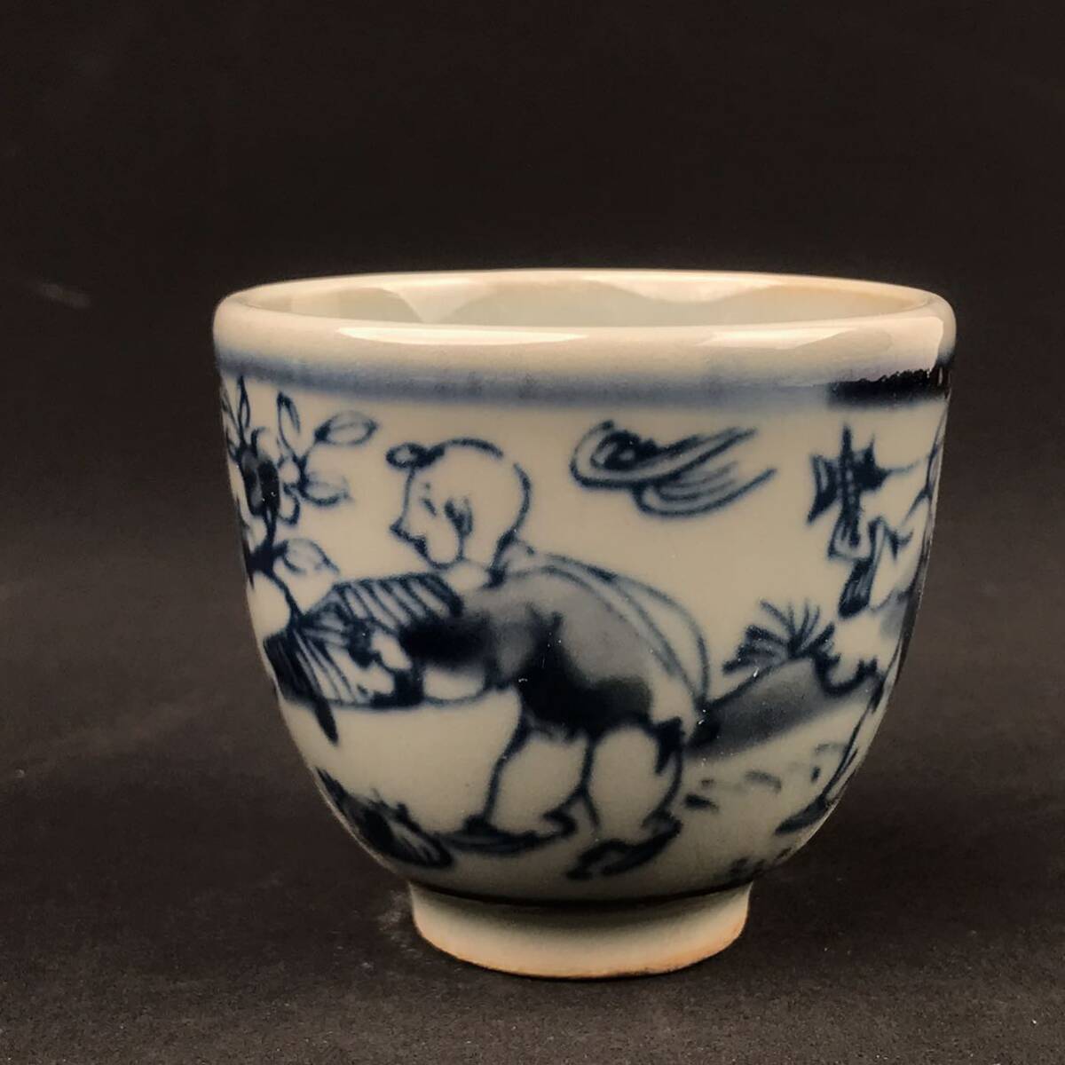 中国古美術 古玩 酒器 清代 青花杯 時代物染付 湯呑 時代物 酒器 茶道具