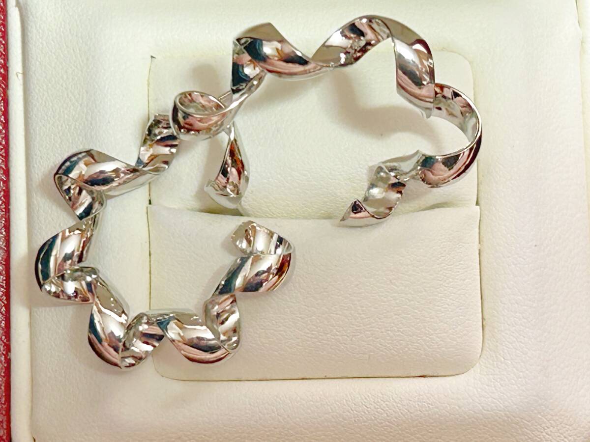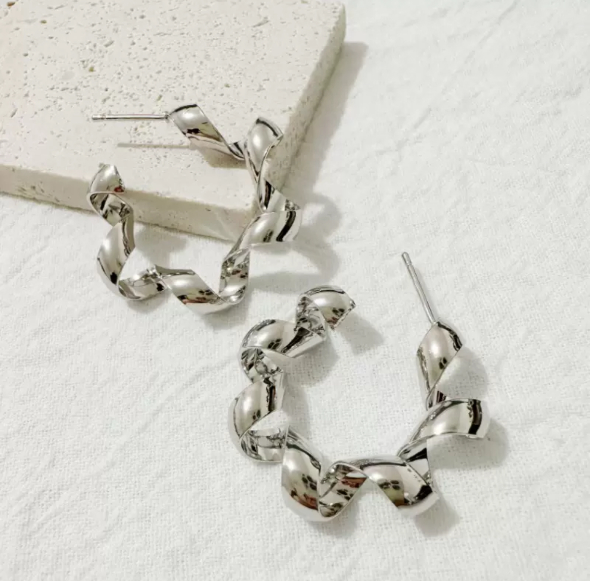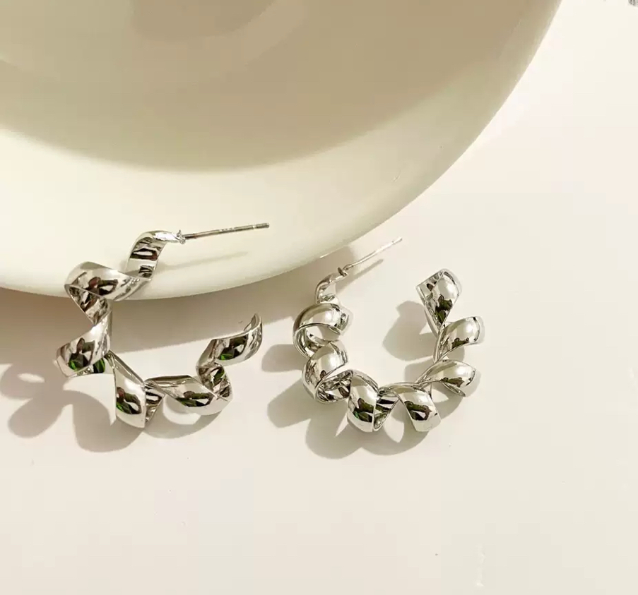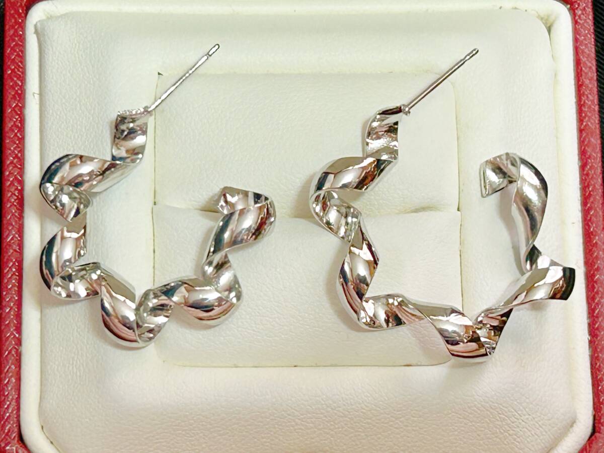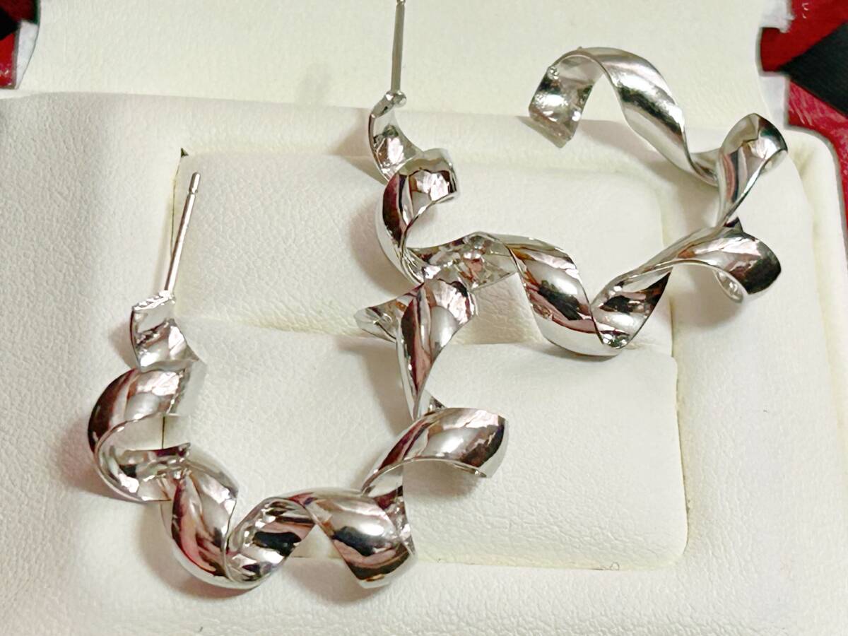 このピアスは、S925をk18ゴールドでコーティングしたものです。ホワイトゴールドの輝きがありながら、アレルギーに配慮されています。また、綺麗なカーブがデザインされ、上品な仕上がりになっています。