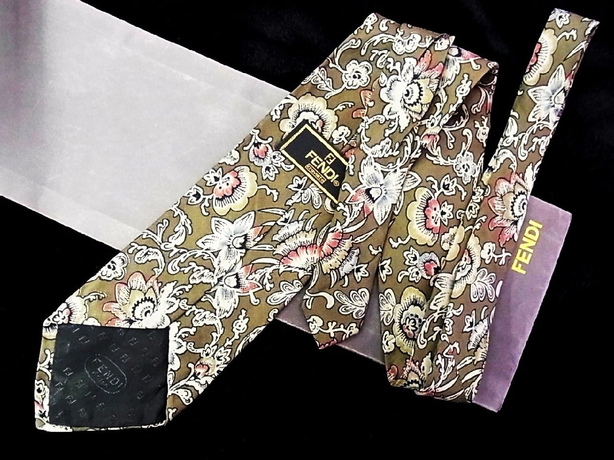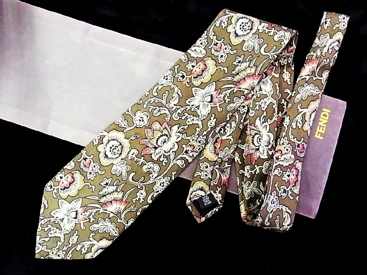 ★今週の特売★5162★高級ブランド【キャラ柄】★フェンディ【花 植物 柄】ネクタイ★