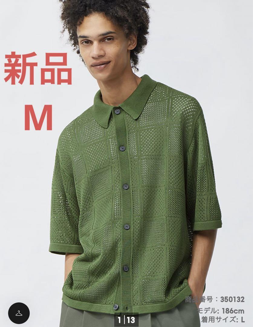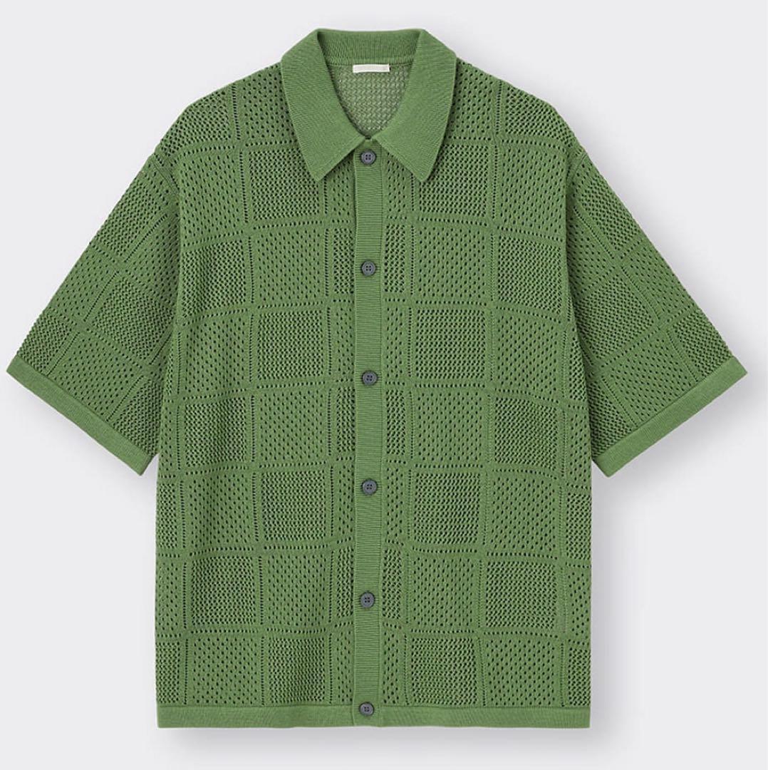 MB さん絶賛♪ GU ウォッシャブルメッシュニットシャツ 5分袖 メッシュ グリーン 緑 M 350132 356000