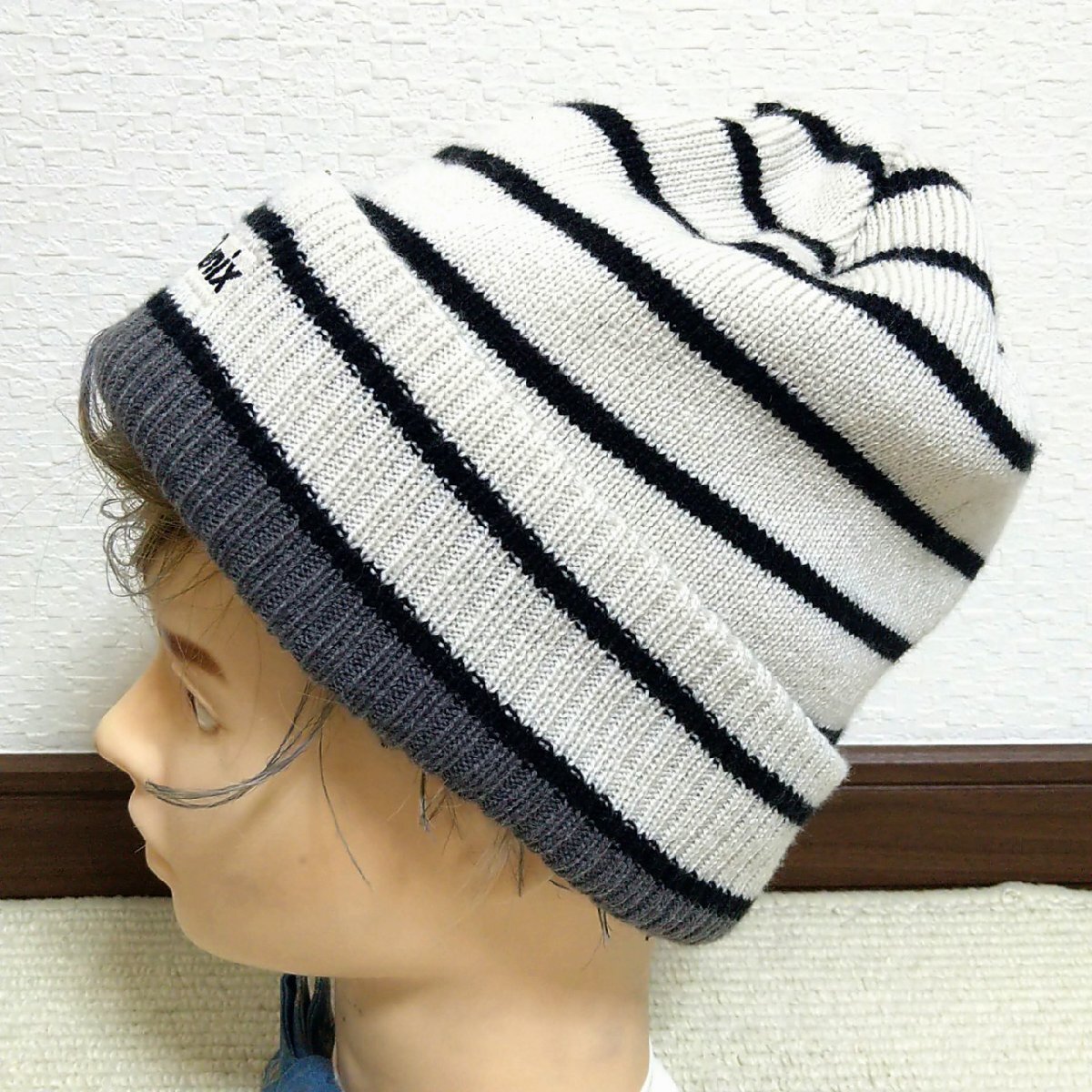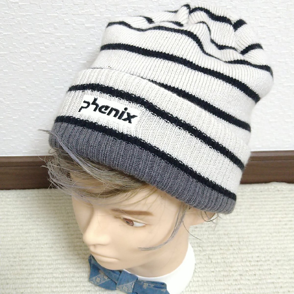 (^w^)b phenix フェニックス ボーダー柄 ワッチ アクリル ニット キャップ CAP 帽子 裏 フリース ヘッド ウェア グレー系 FREE C1069wE