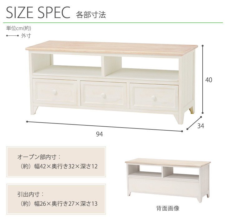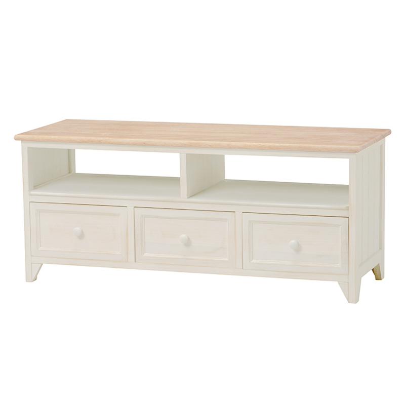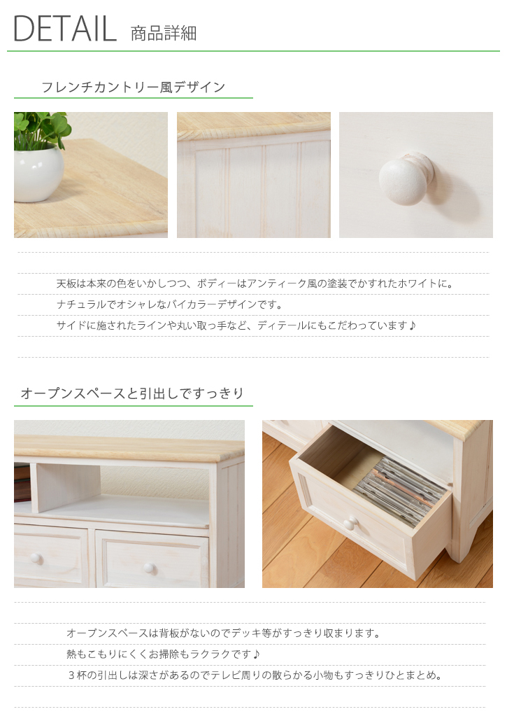 シャビーホワイトの本体にアンティーク調ナチュラルな天板が映える、