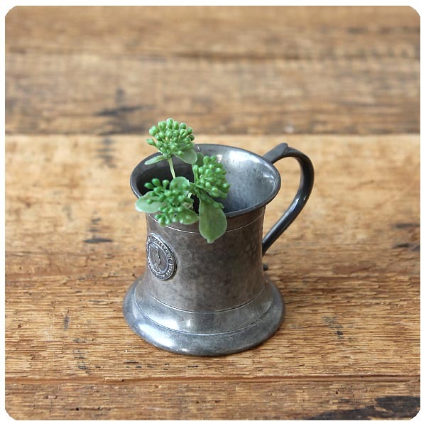 イギリスから直輸入したエリザベス 女王戴冠式記念品のピューターマグカップ。