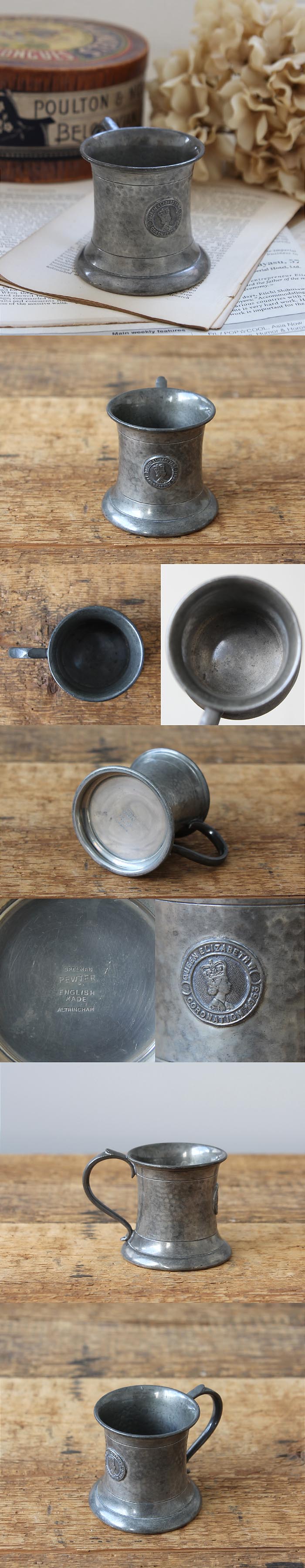 イギリス アンティーク ピューターマグカップ Spelman エリザベス女王戴冠式記念品 P-668