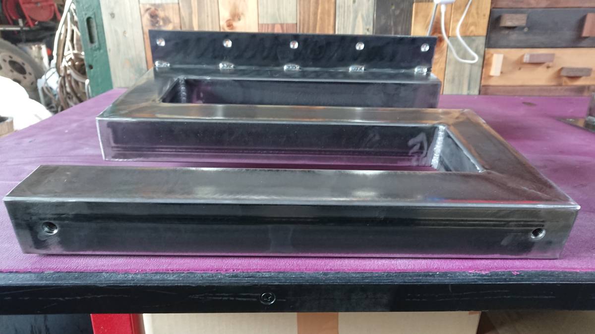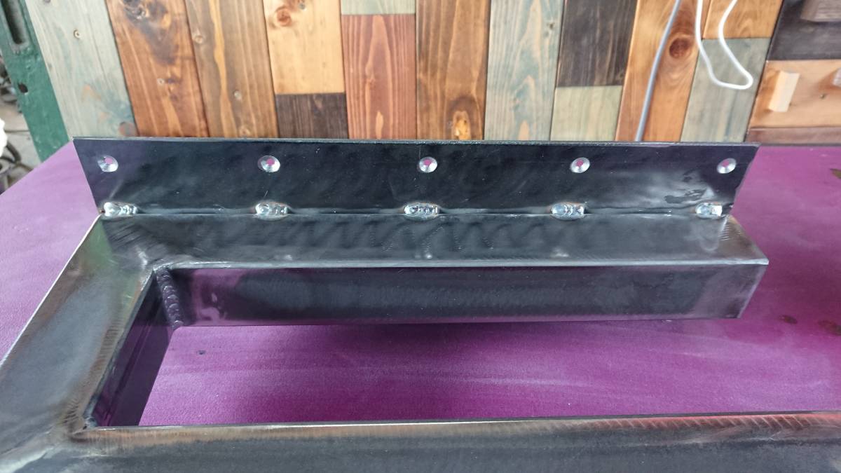 フレーム部:1.6mm×50mm×50mm 角パイプ(スチール) 天板受け:2.3mm 鉄板